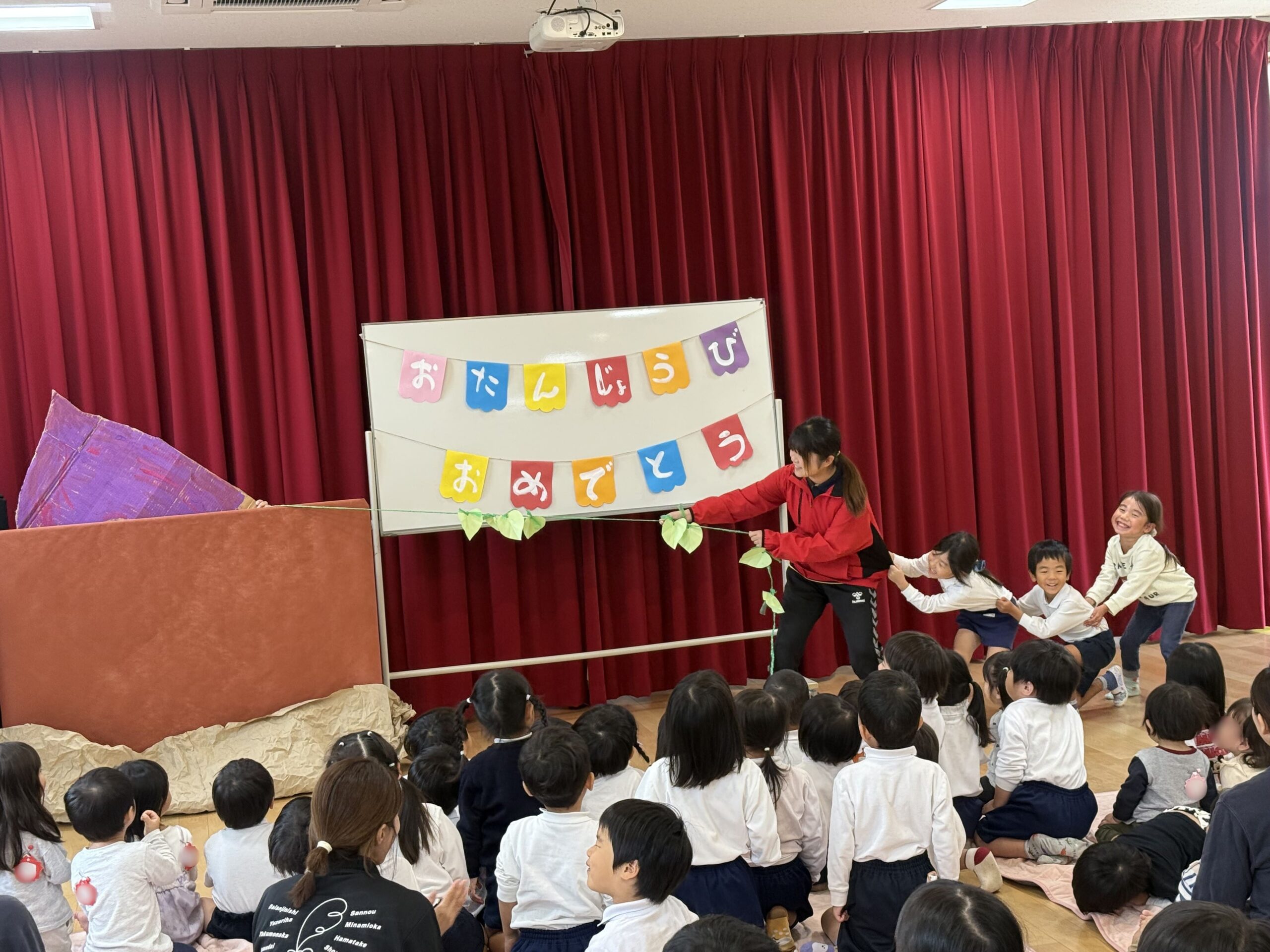 みんなで歌をうたったり、お芋ほりをしたり・・・出てきたさつまいもと♪やきいもじゃんけん✊✌✋もしました。