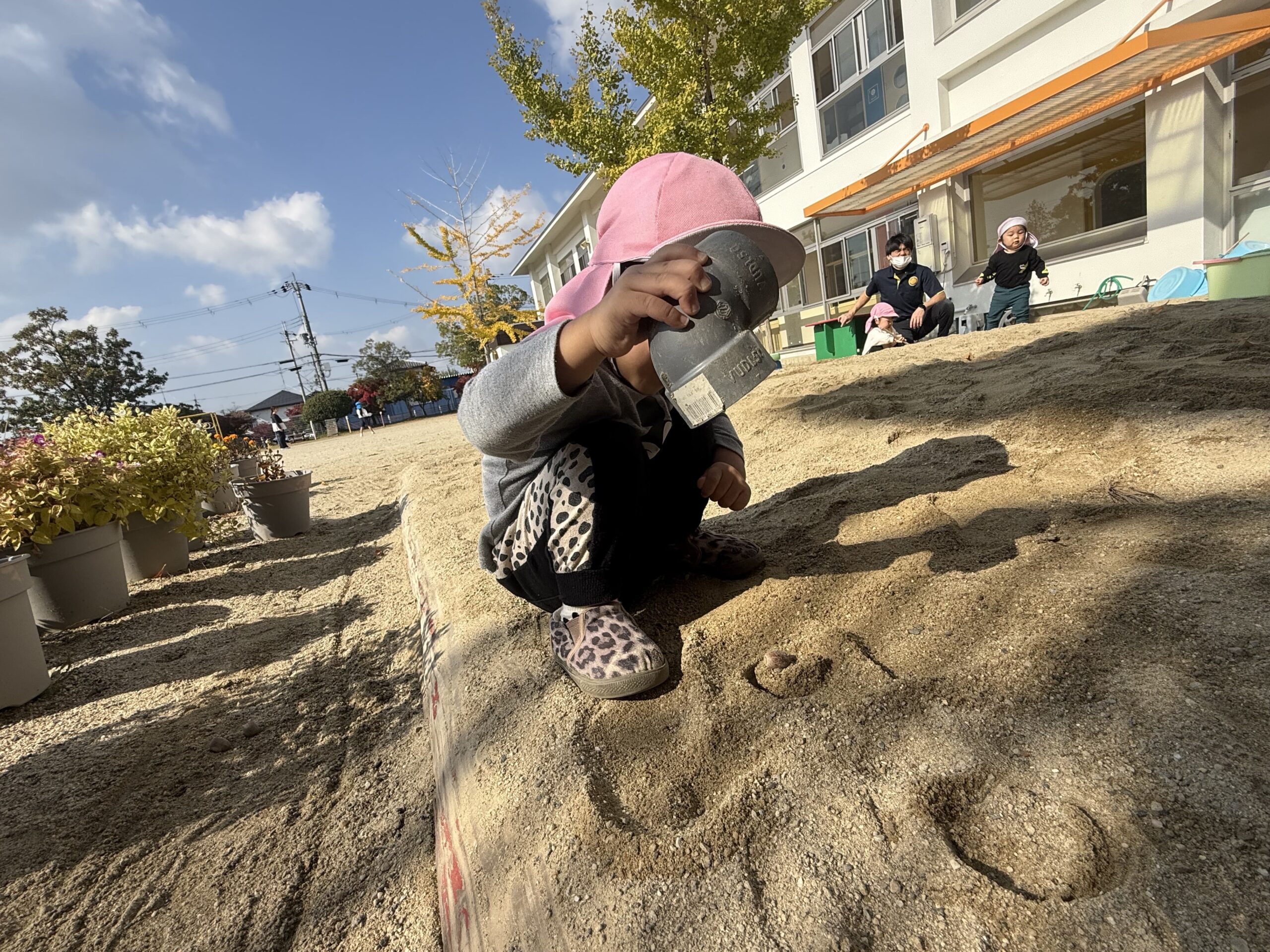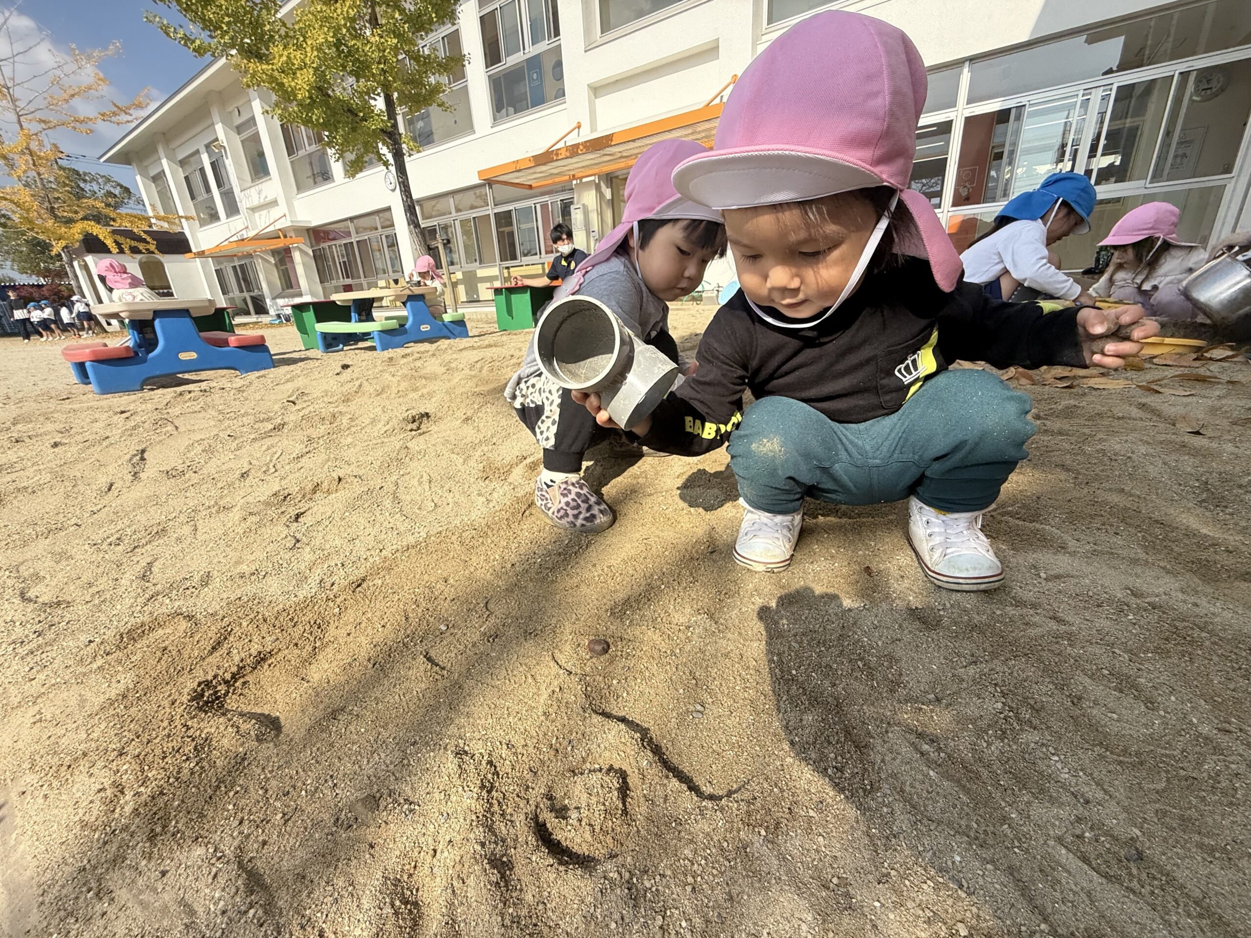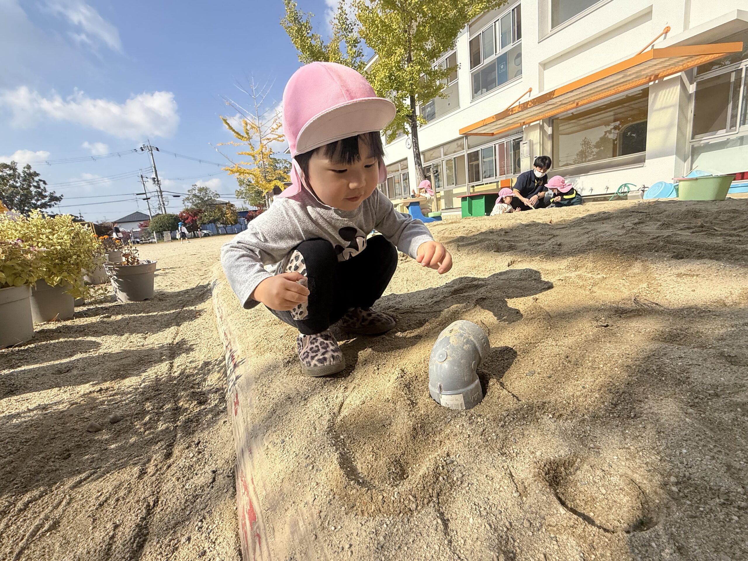 まねっこしてドングリを入れてみたよ!ほら、あったね😊