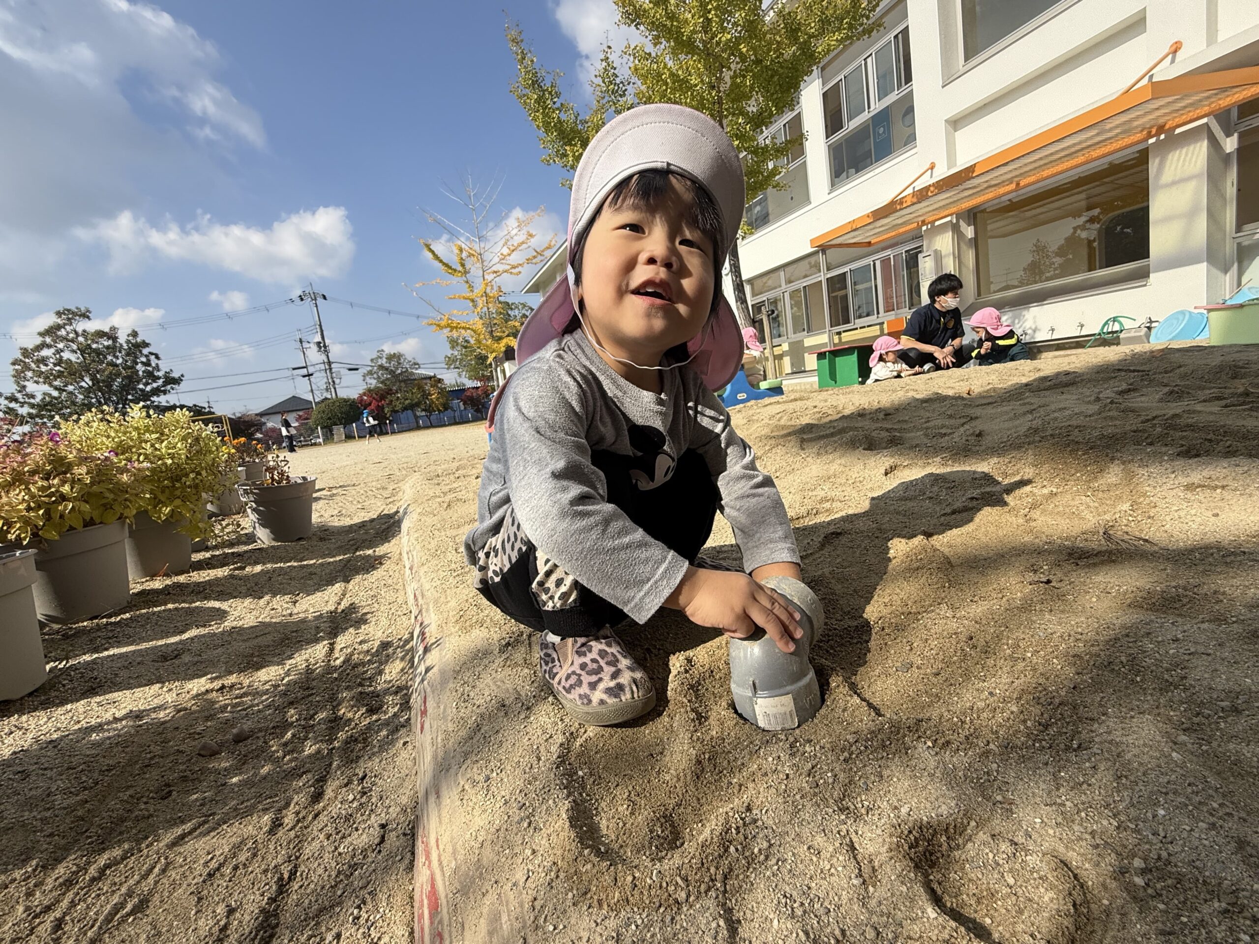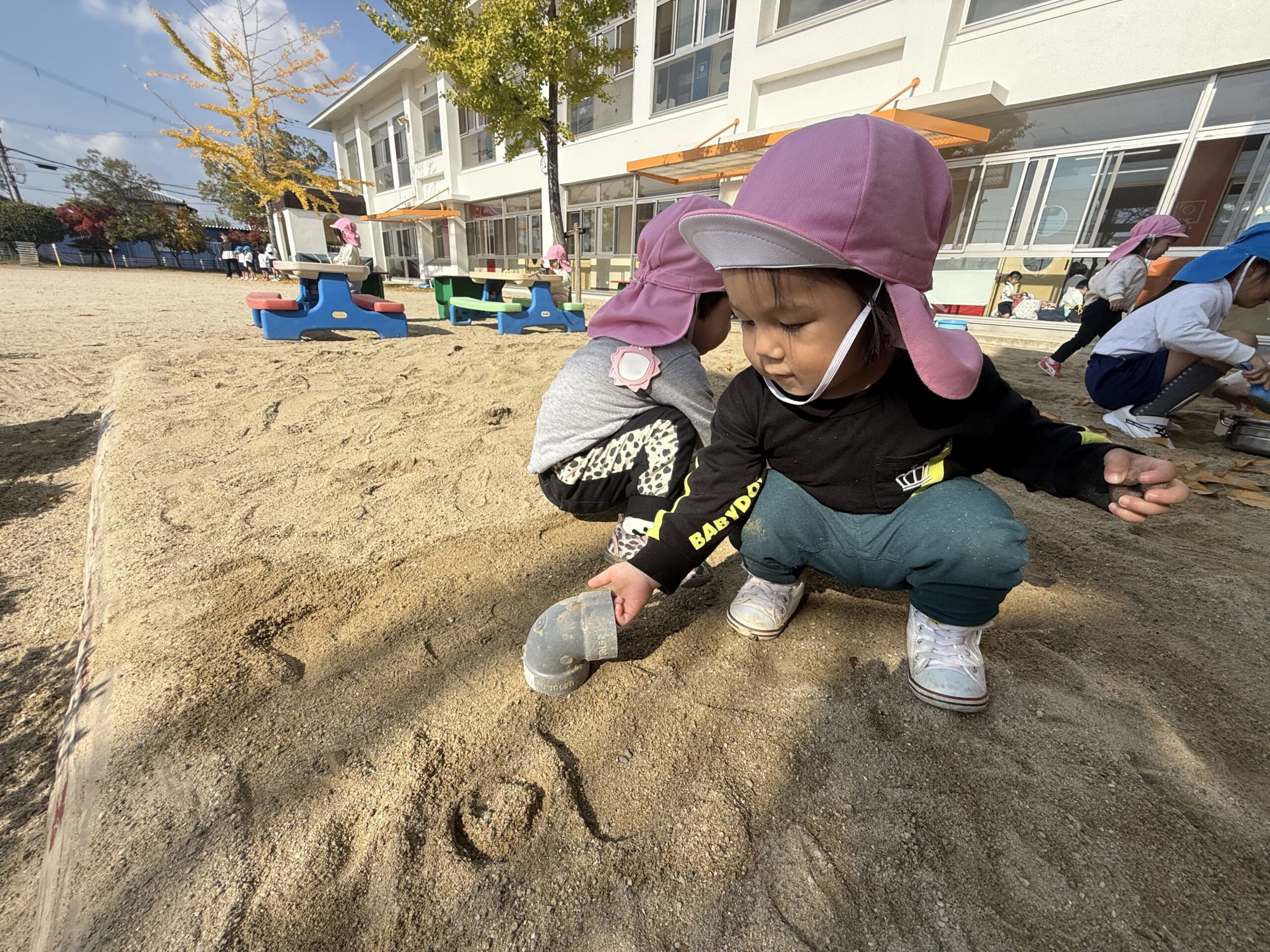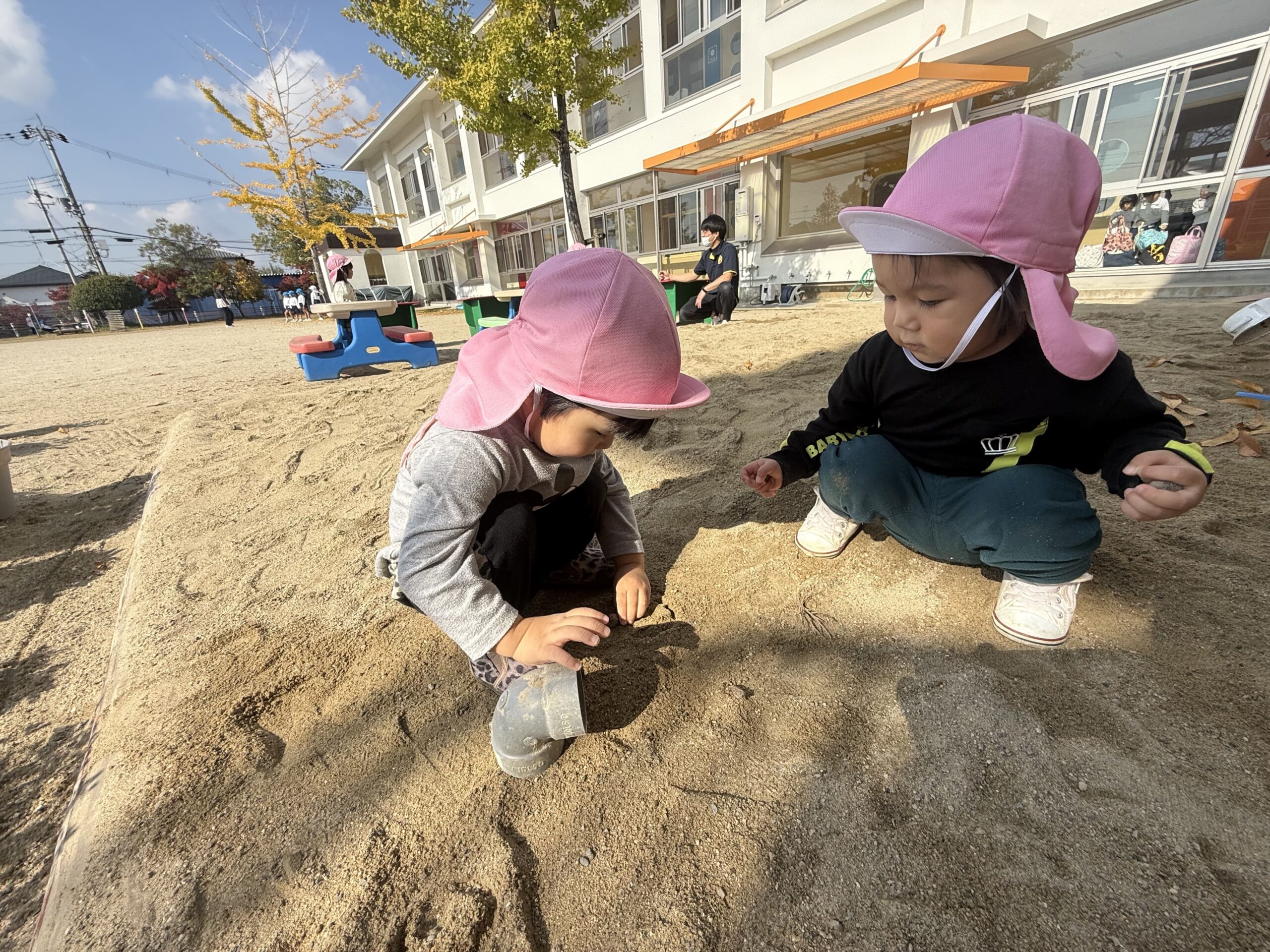 まねっこしてドングリを入れてみたよ!ほら、あったね😊