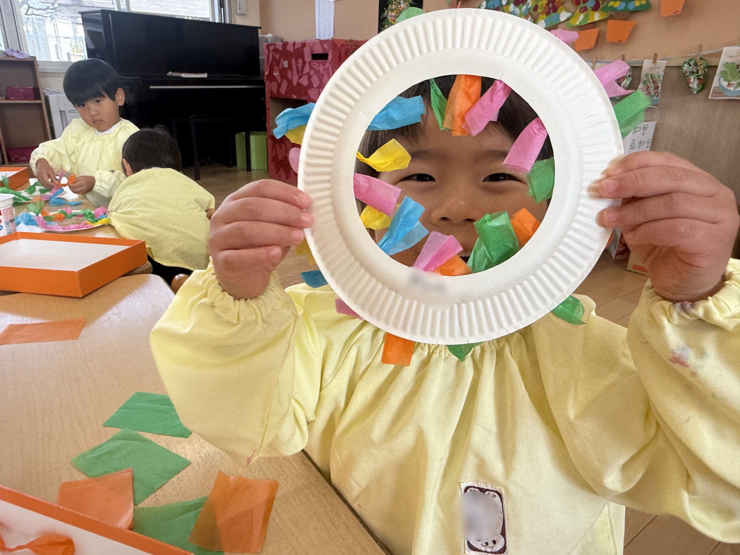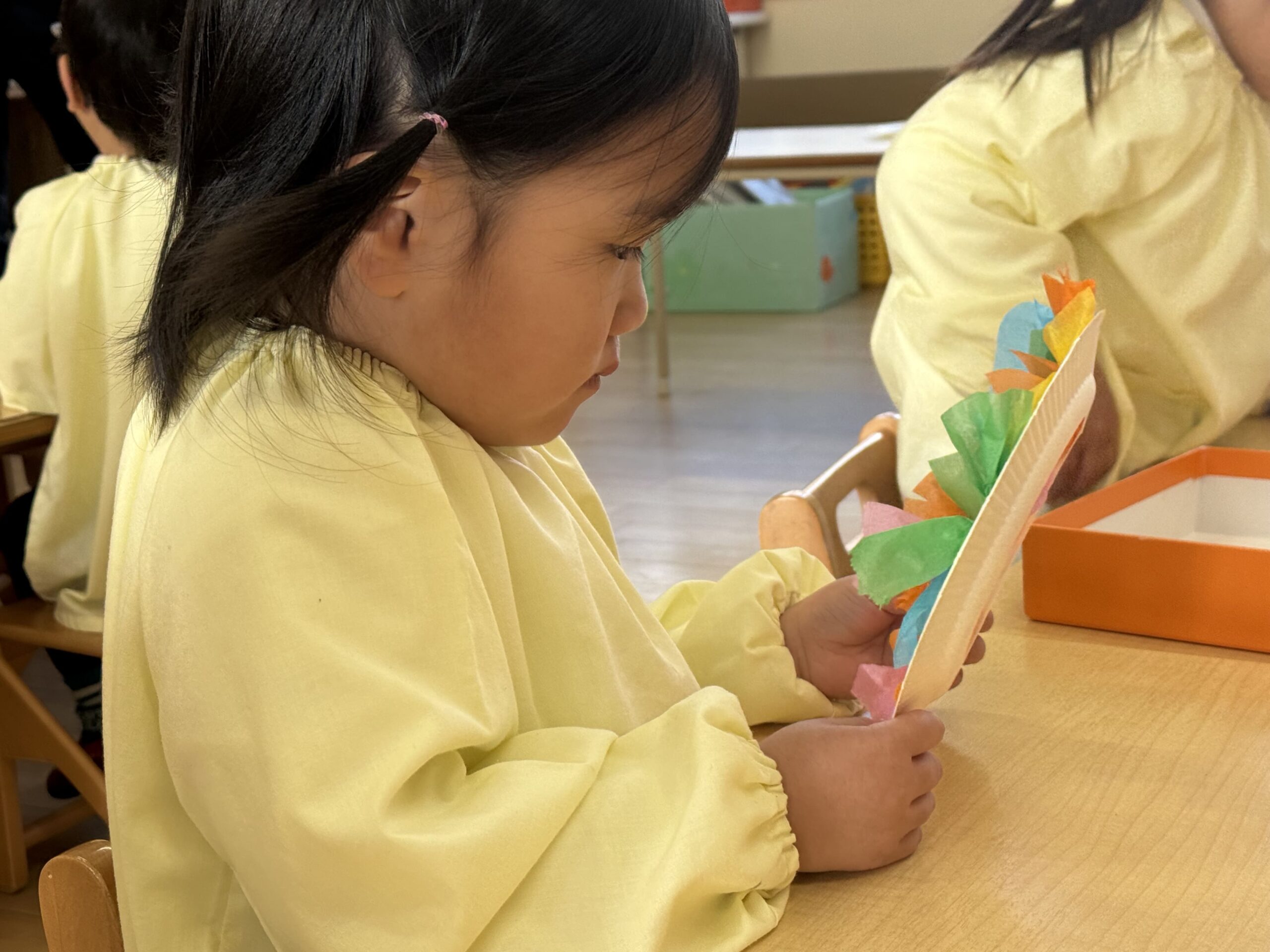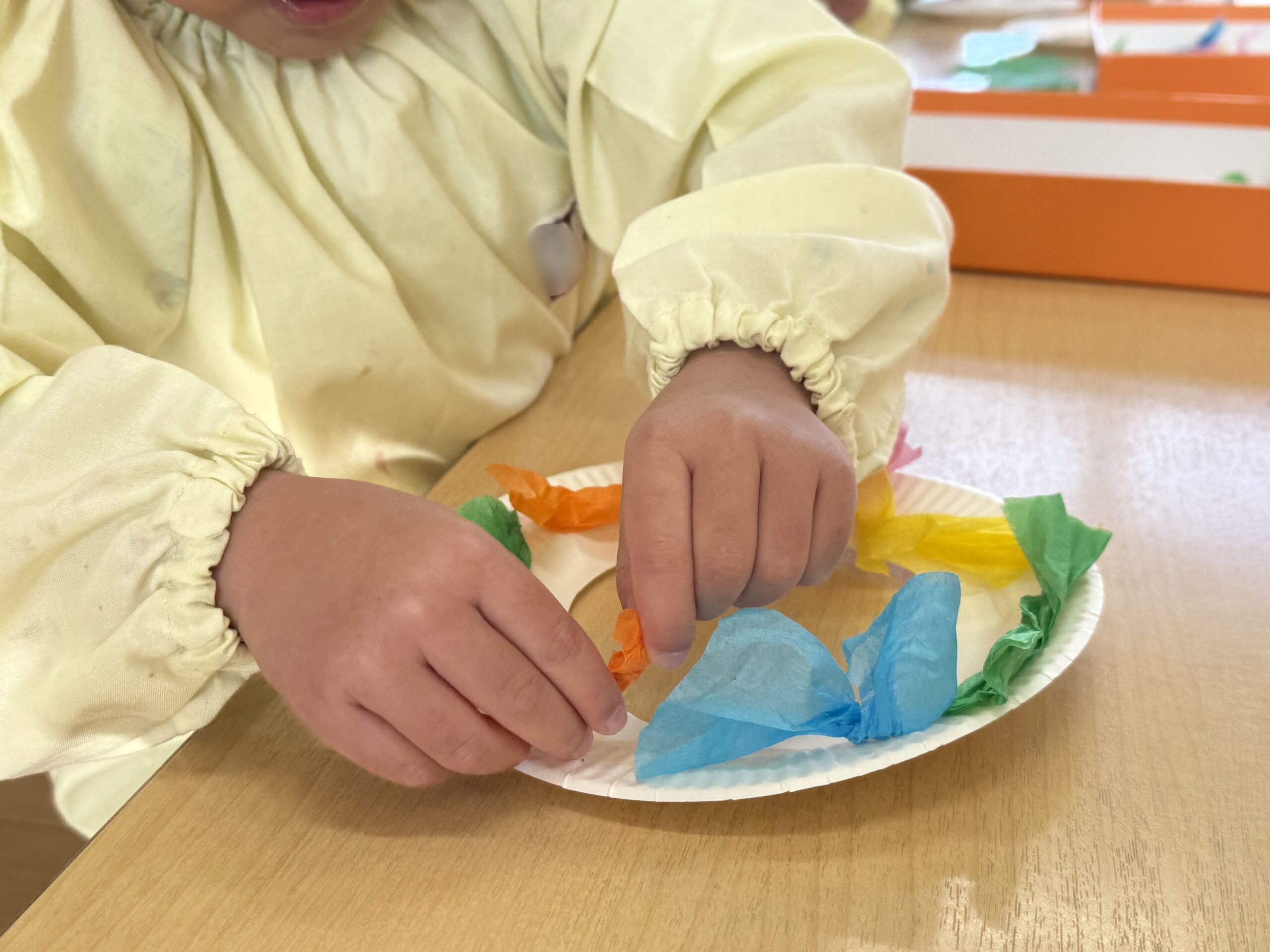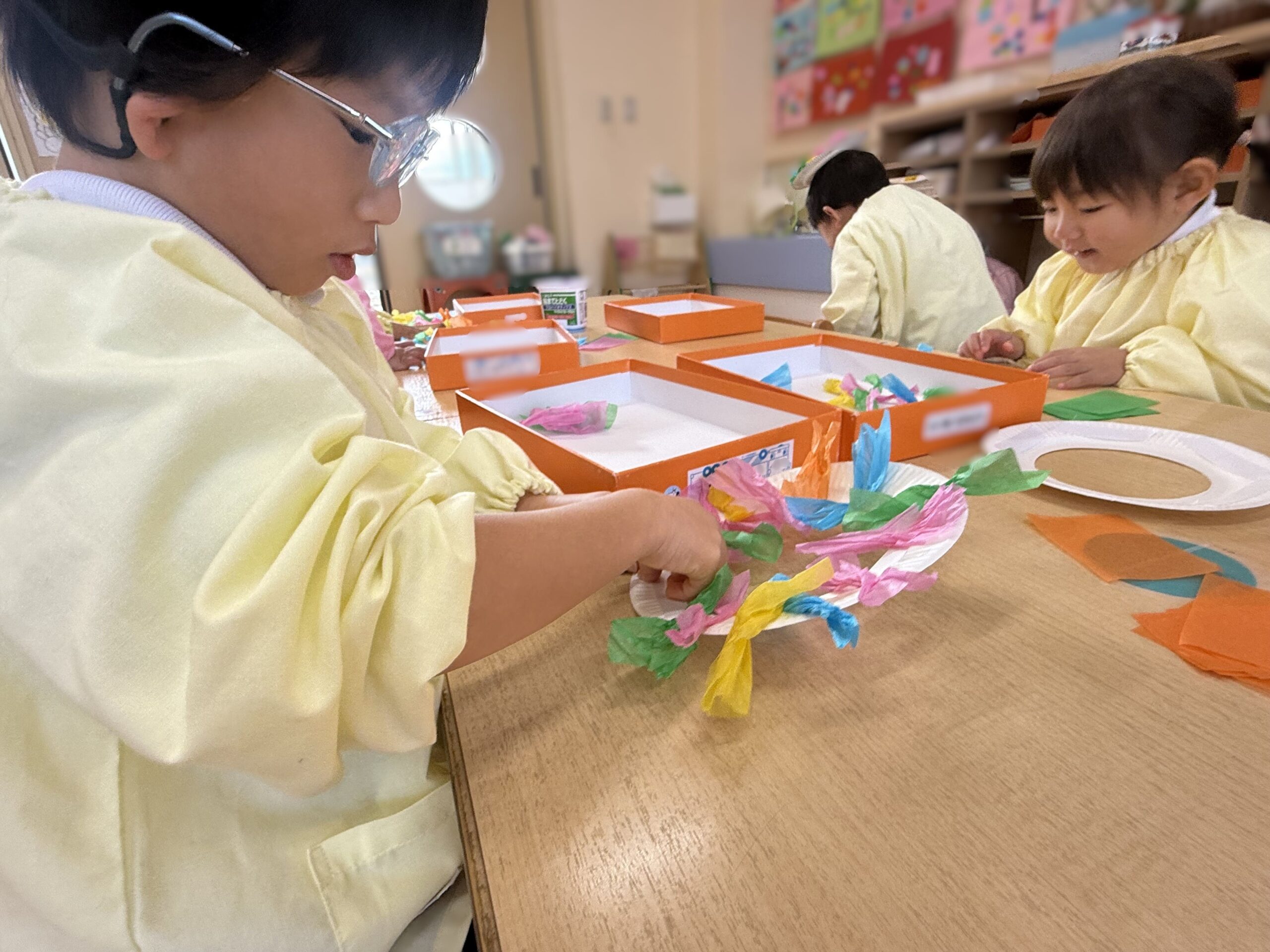 お花紙をねじってできたのは「リボン!🎀」「キャンディ!🍬」などなど