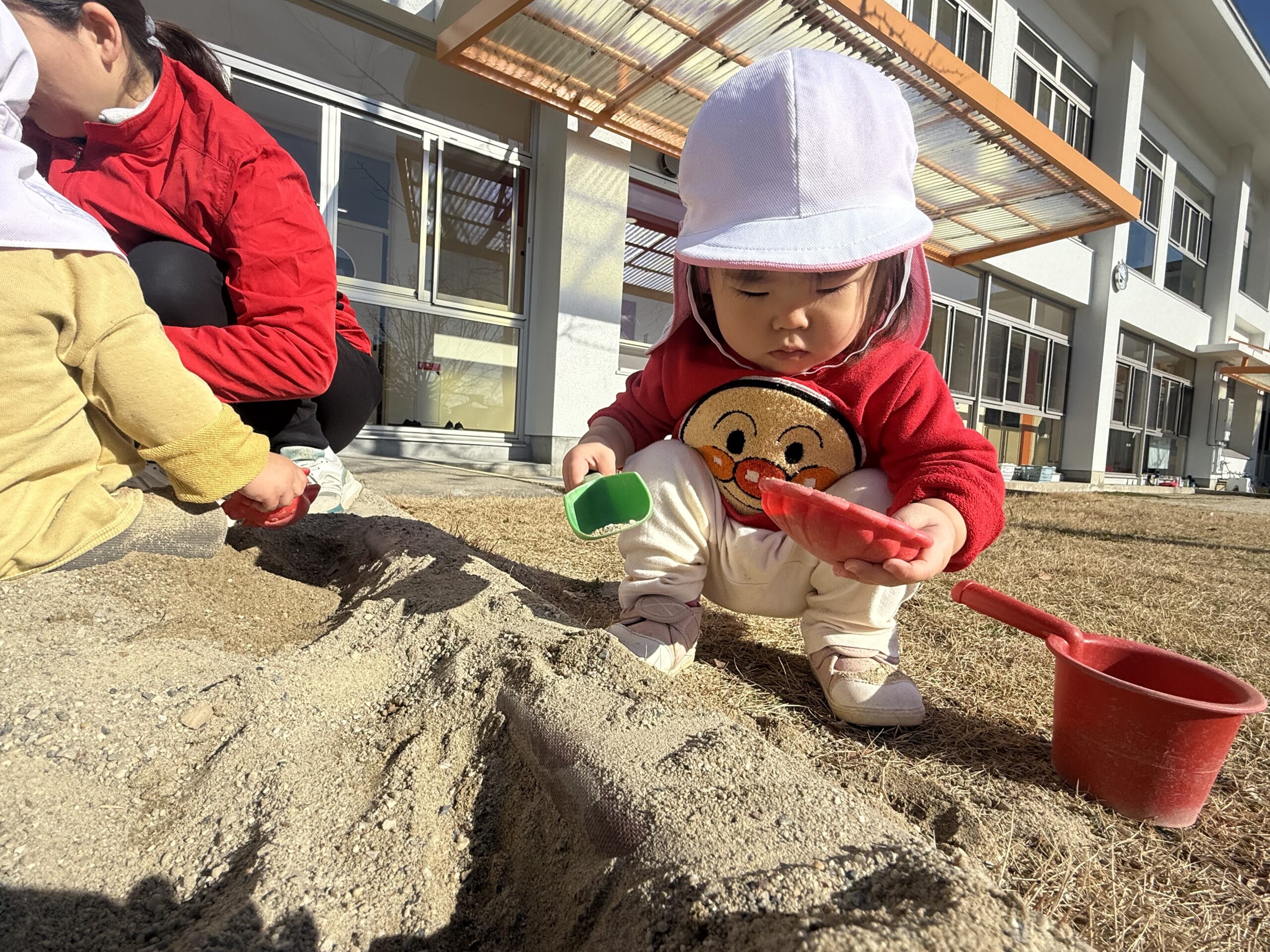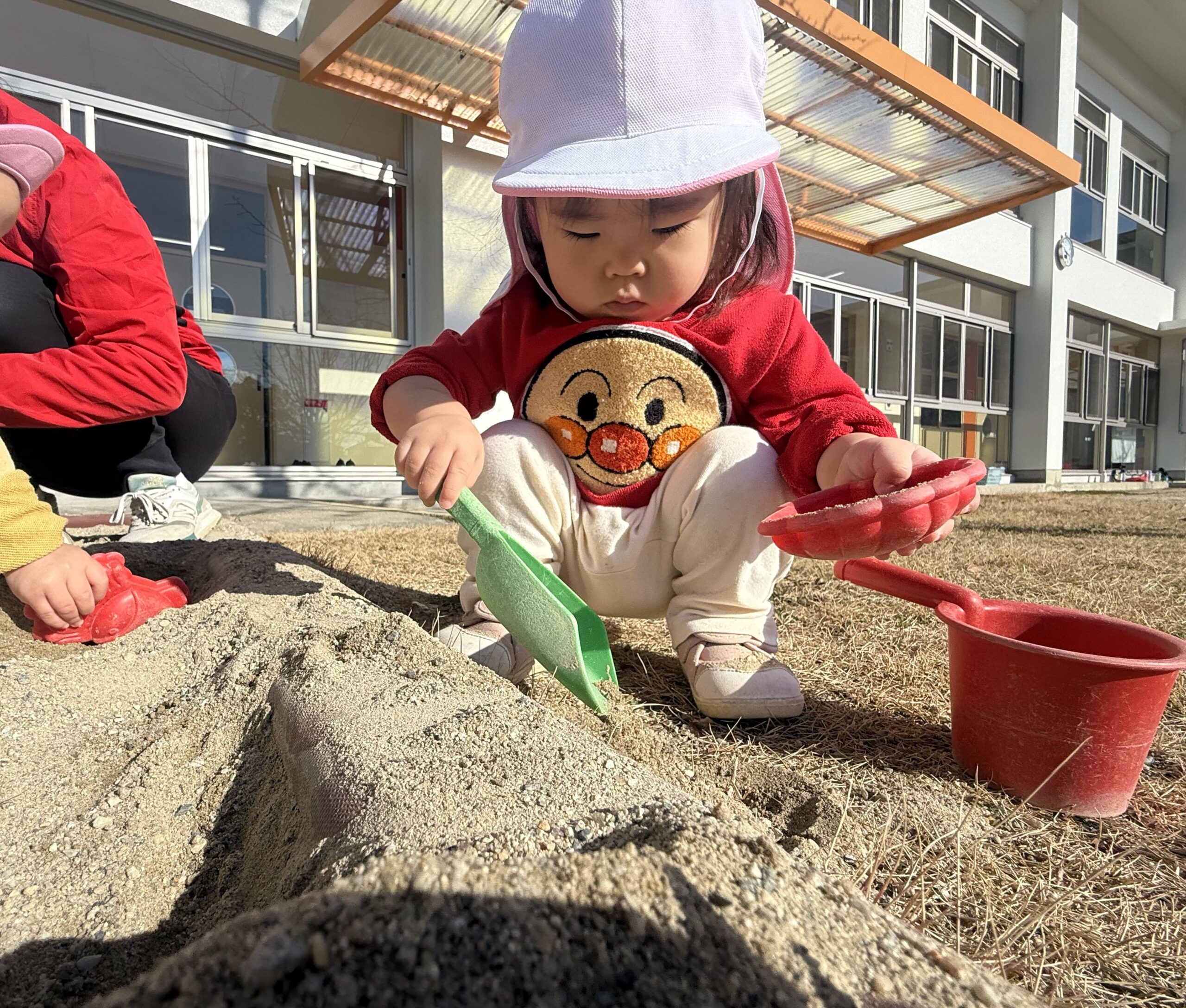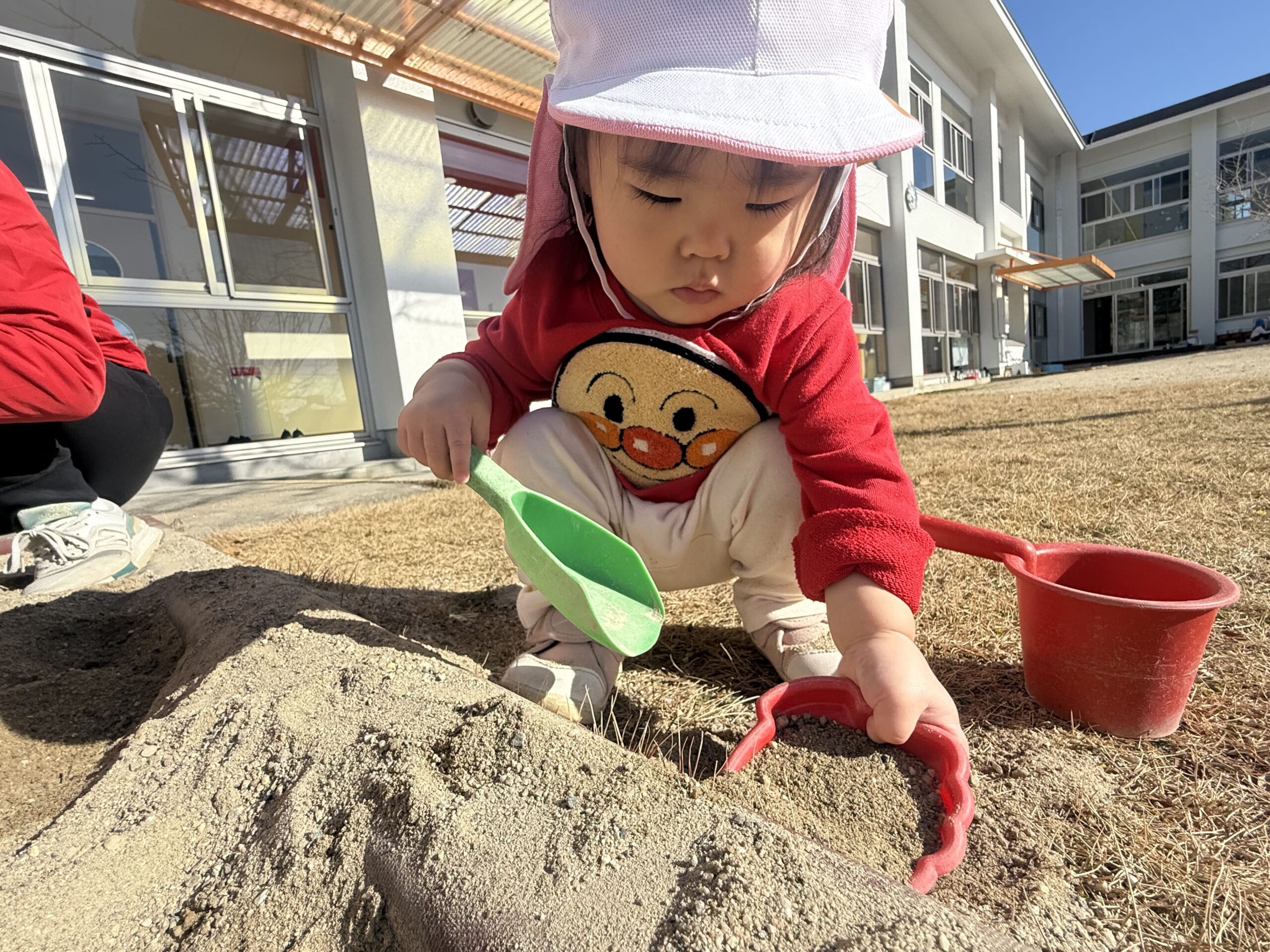 よし!スコップで砂をすくってみよう
