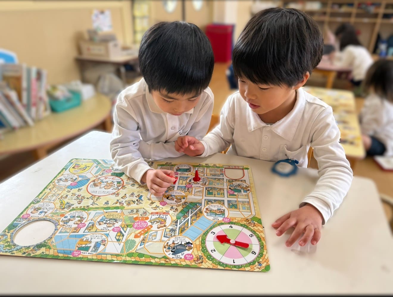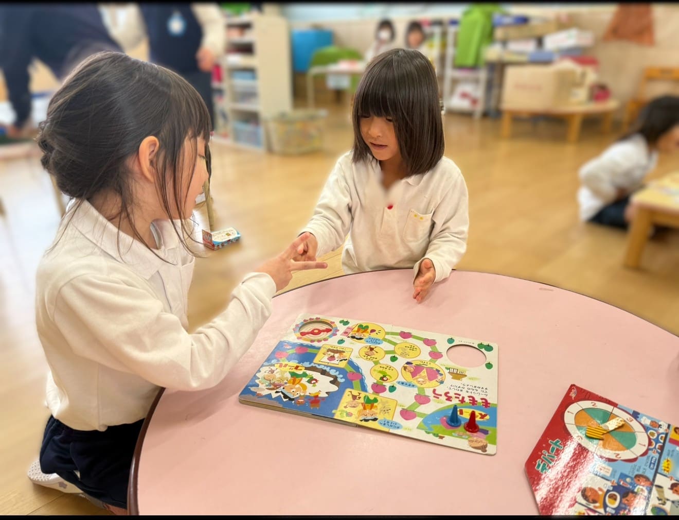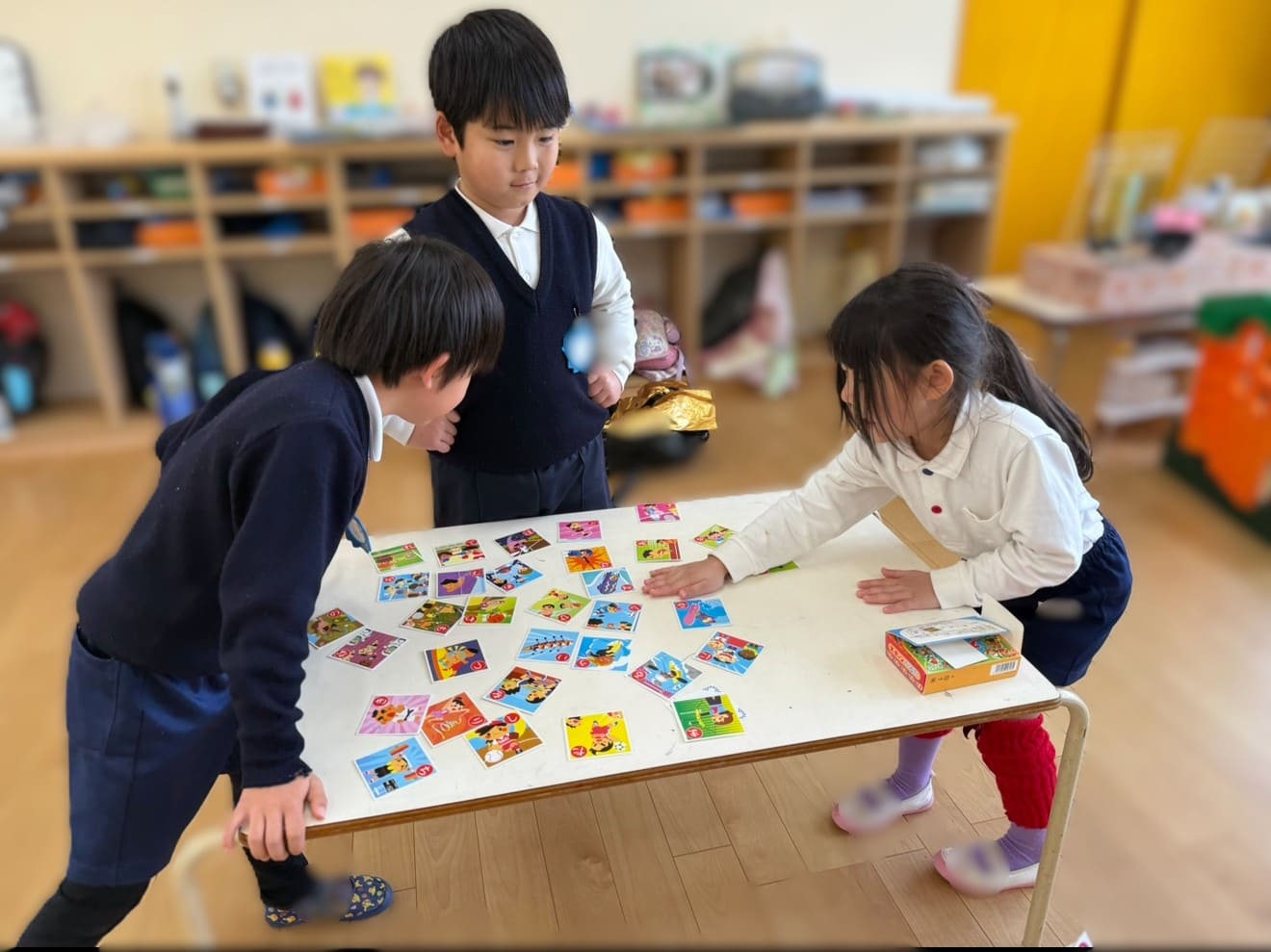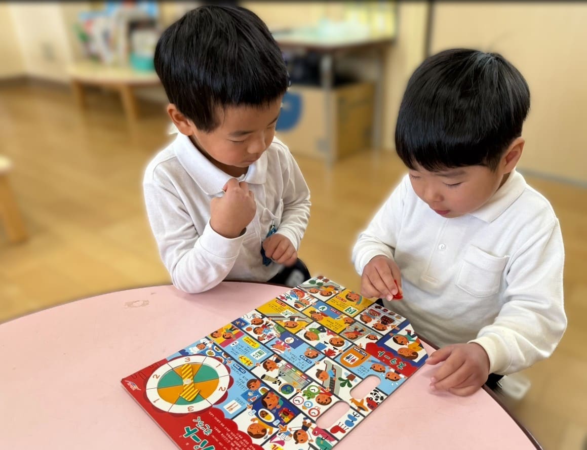 「一緒にしよう」と友達を誘ってカルタや双六を楽しみました。一緒に遊ぶと何だか気持ちがほっこりあったかいね♡
