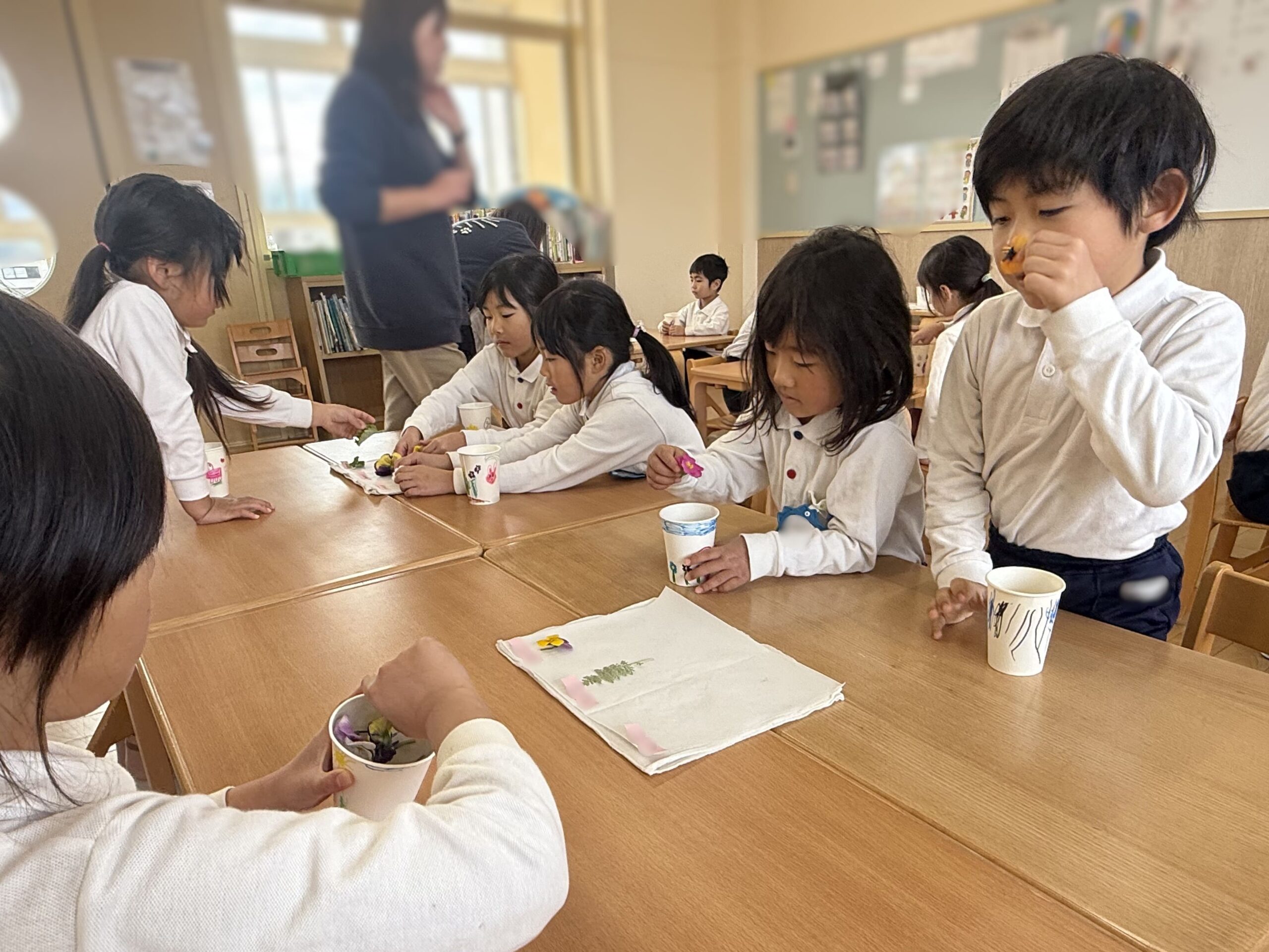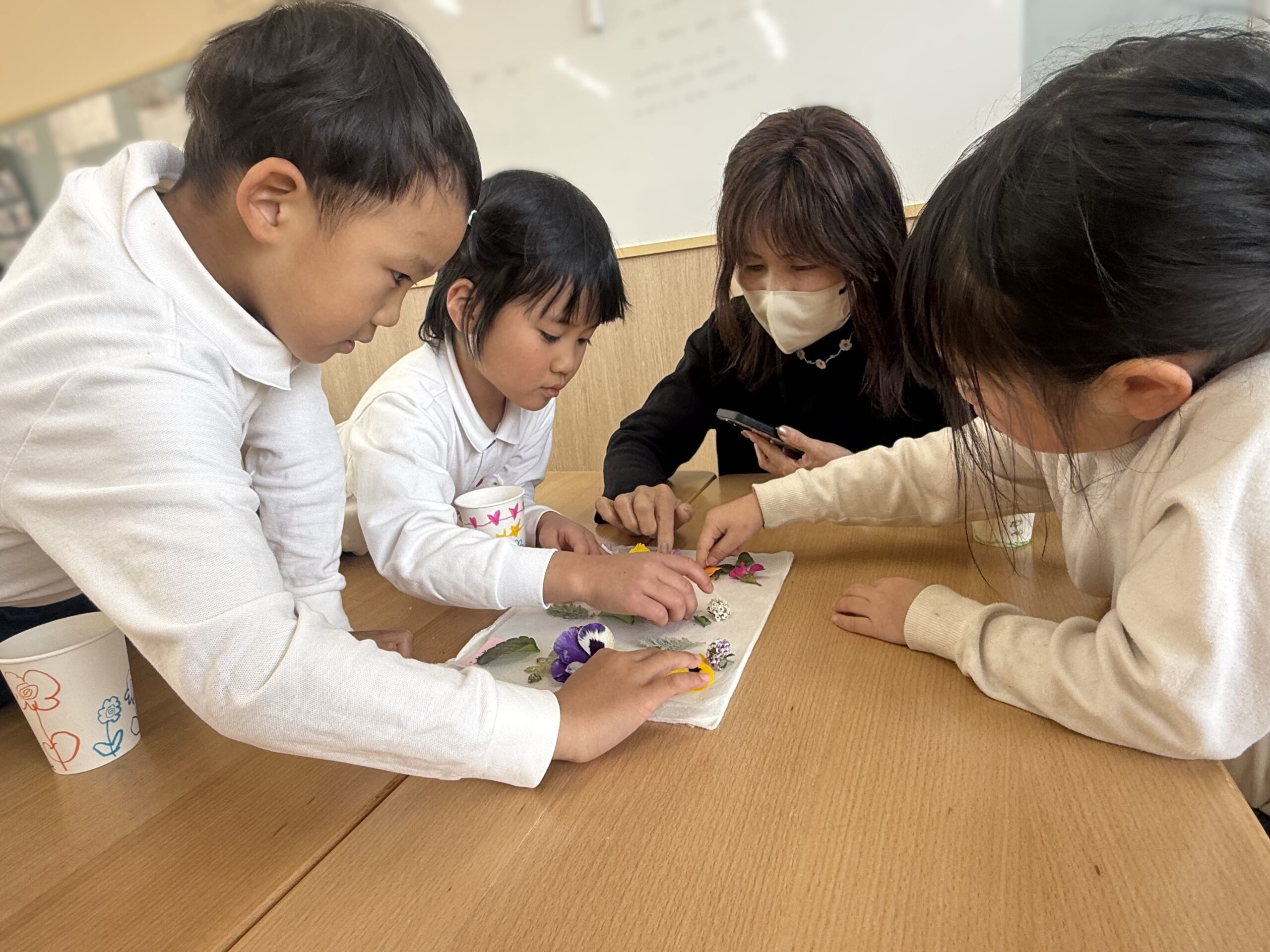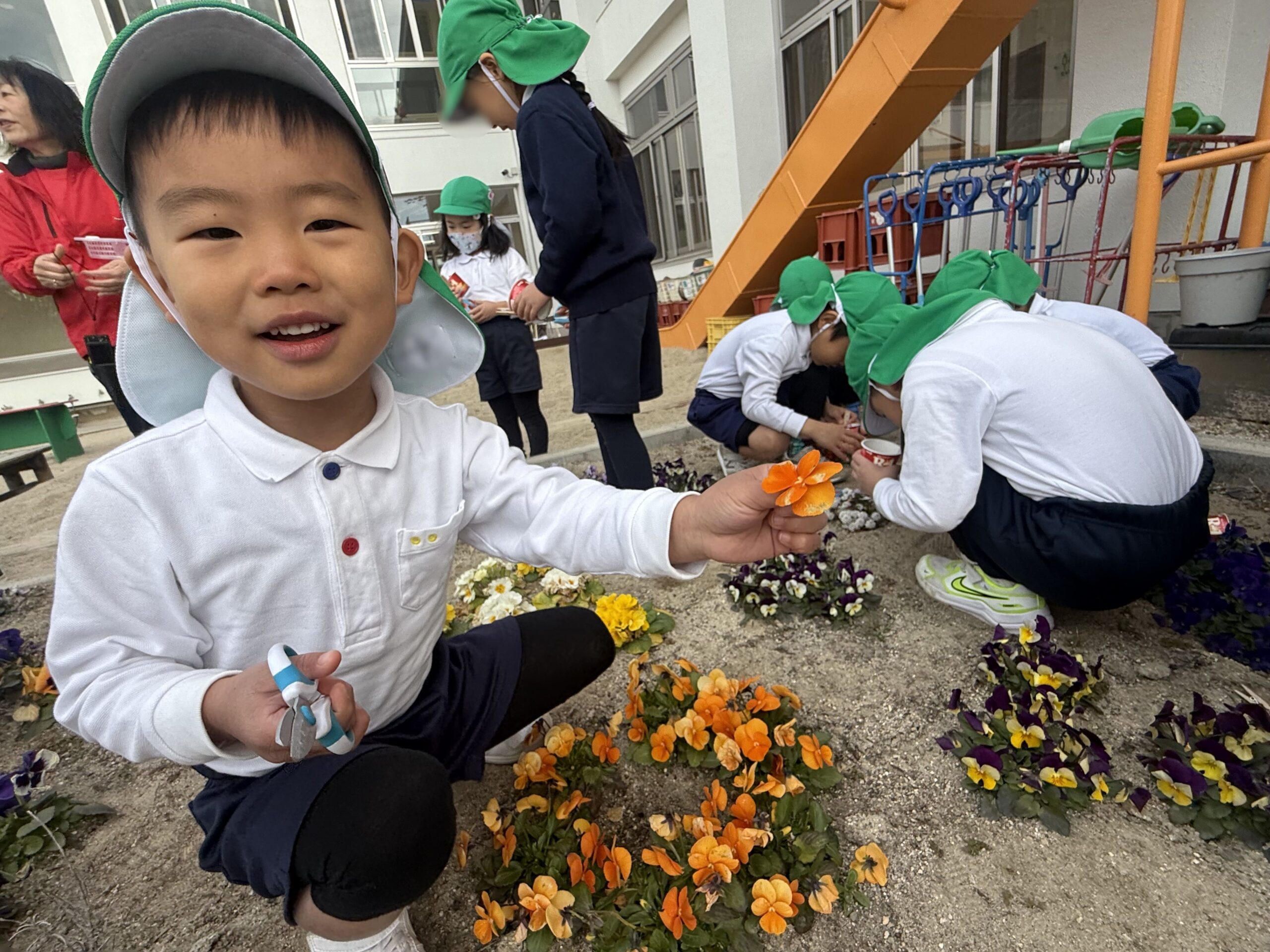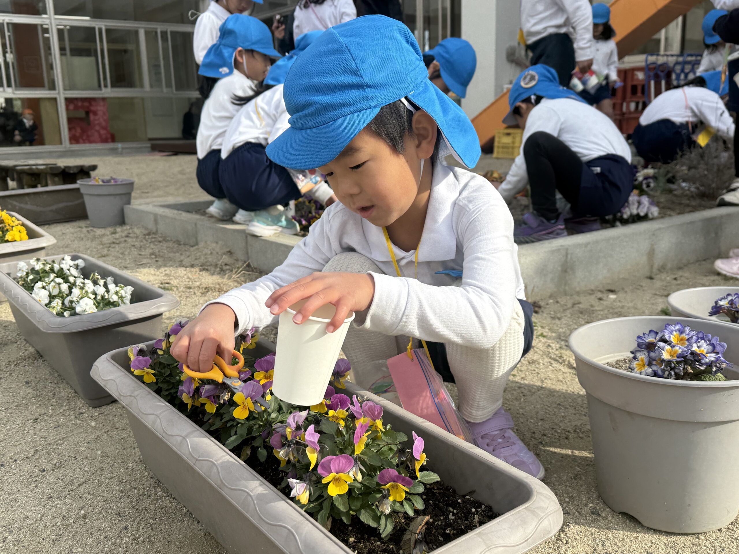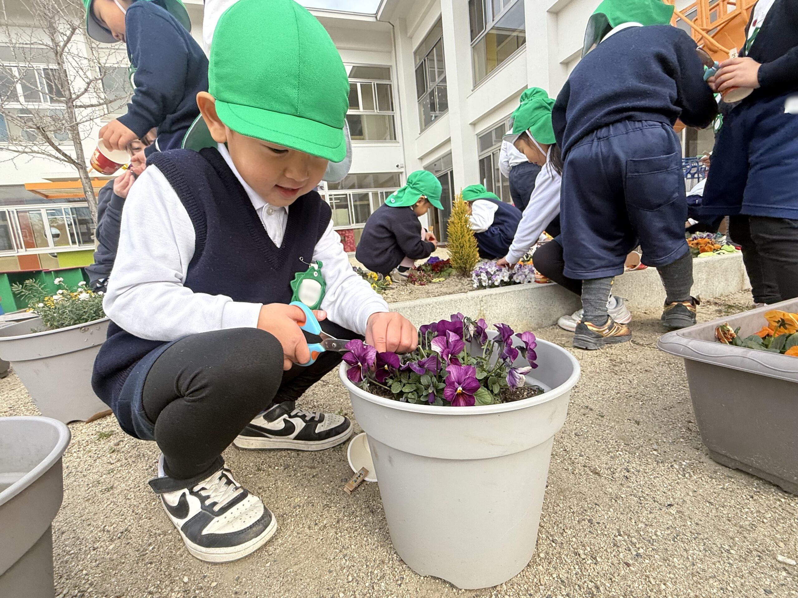 「パンジー知ってる!」「これは、なんていう花かな?」「いい匂いする~」など田村先生と話をしながら、好きな花を選ぶのはとても楽しそうでした。