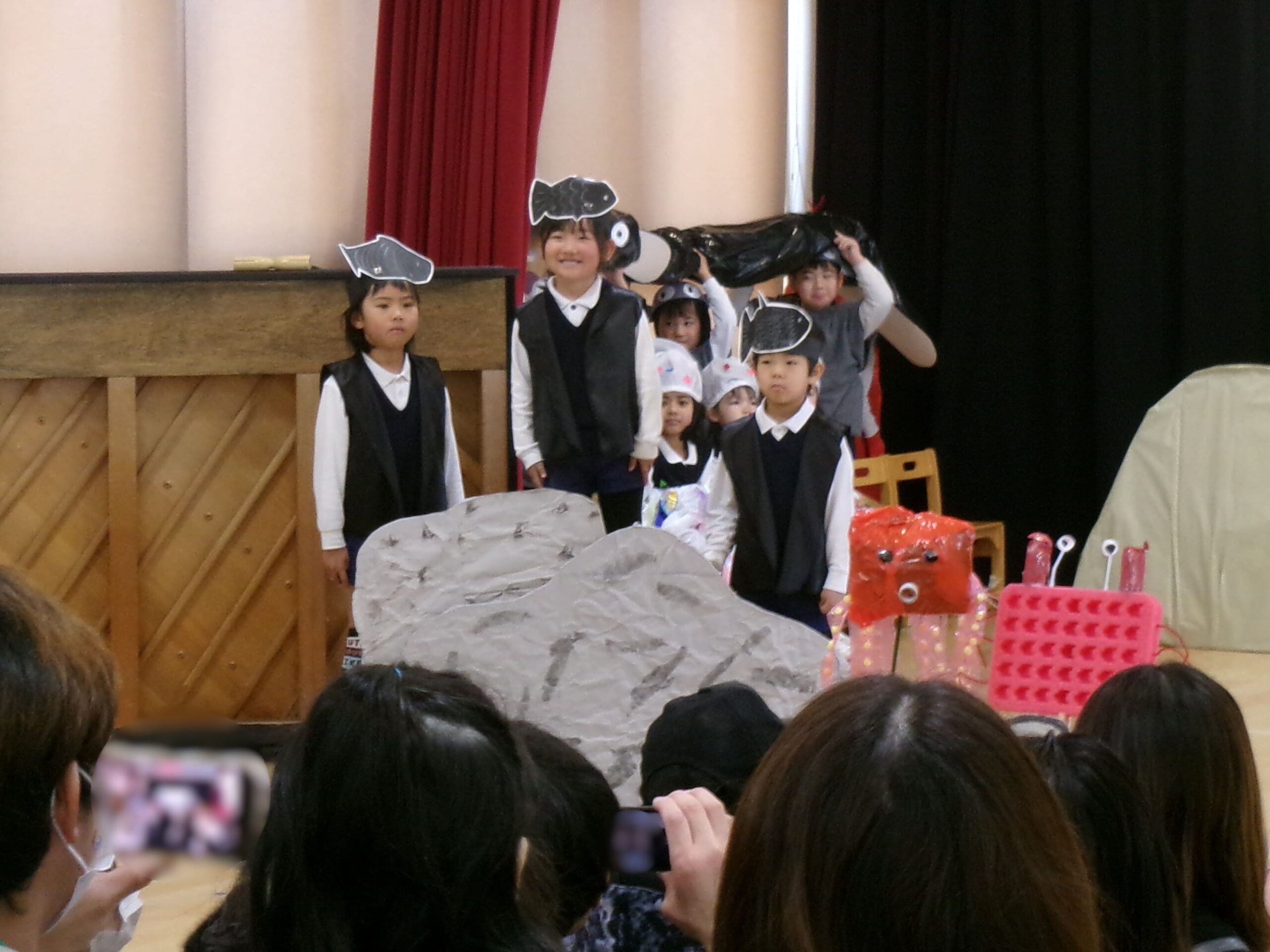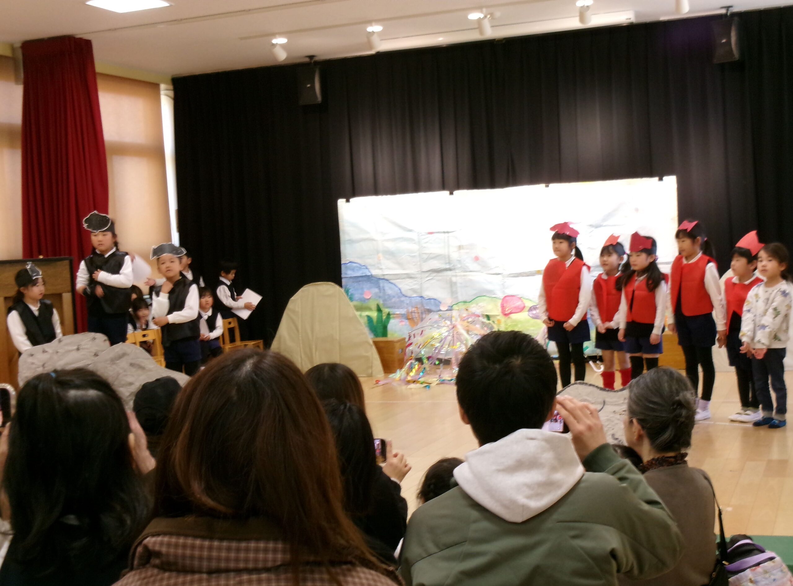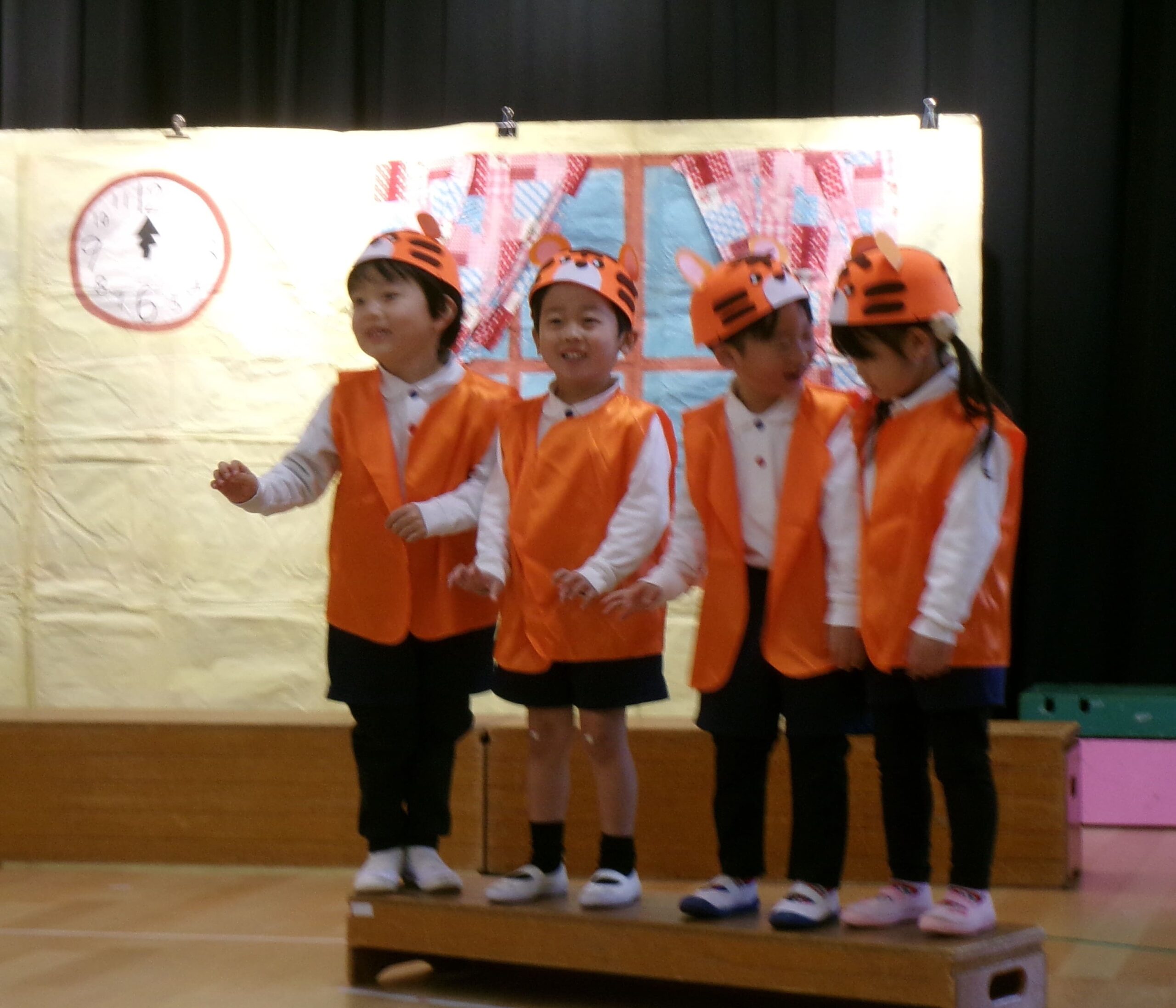 たくさんのお家の方の前でドキドキしながらも、クラスの友達と一緒にお話の世界を楽しんでいる姿を見ていただけたかと