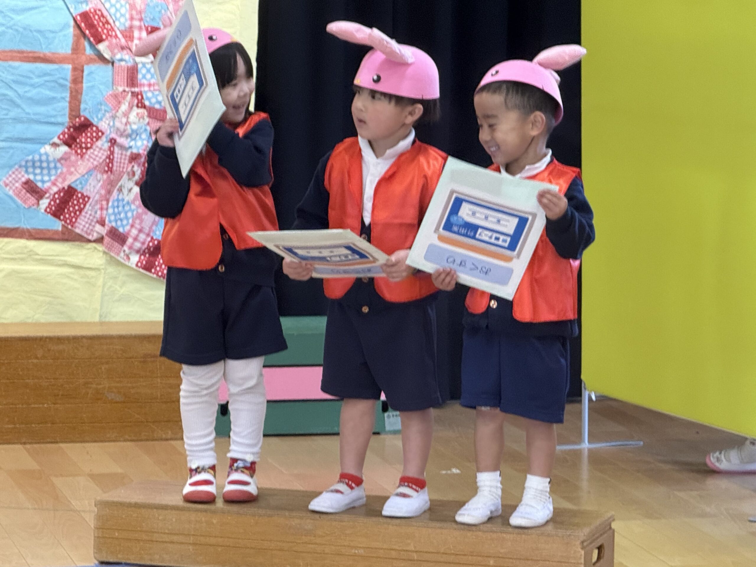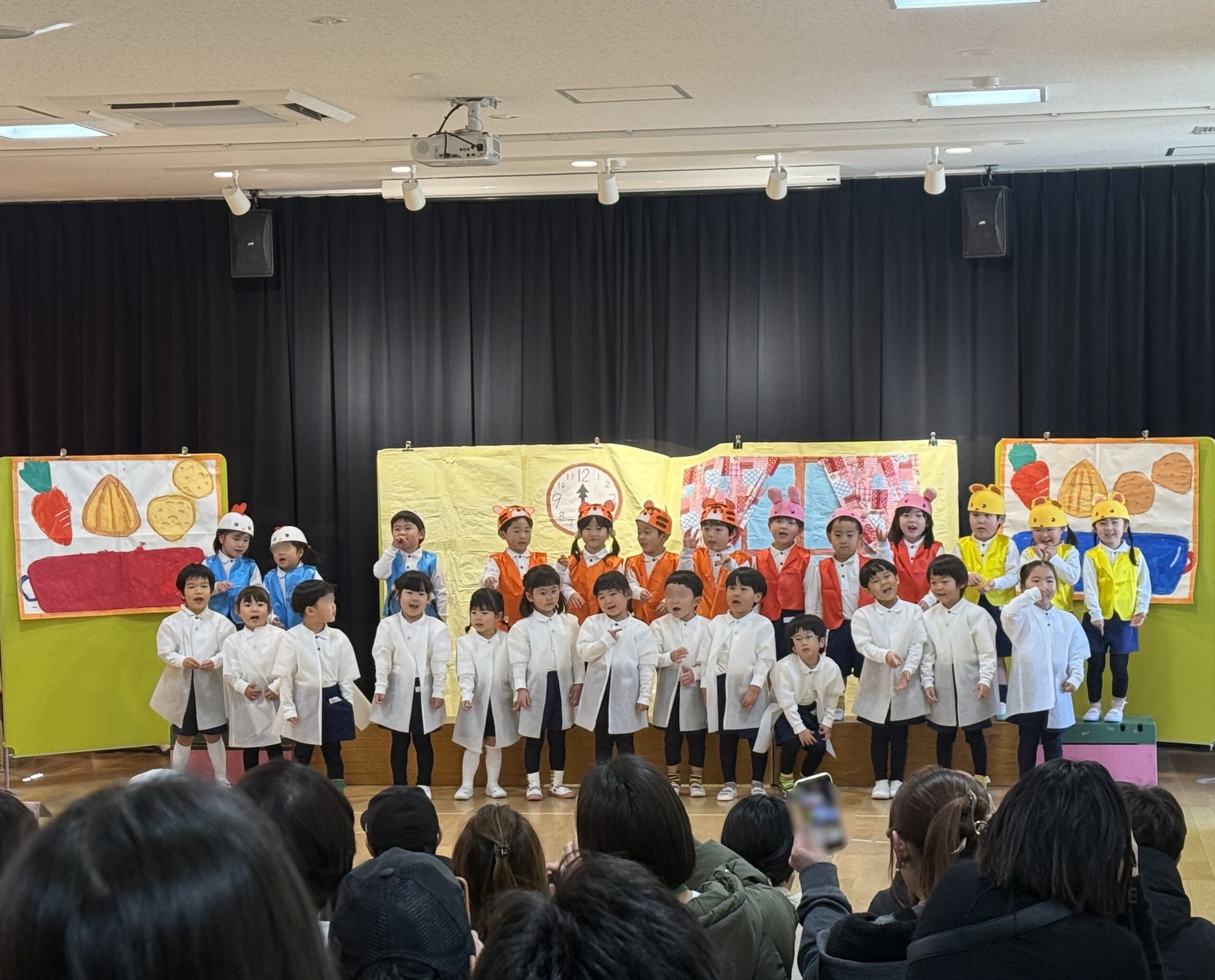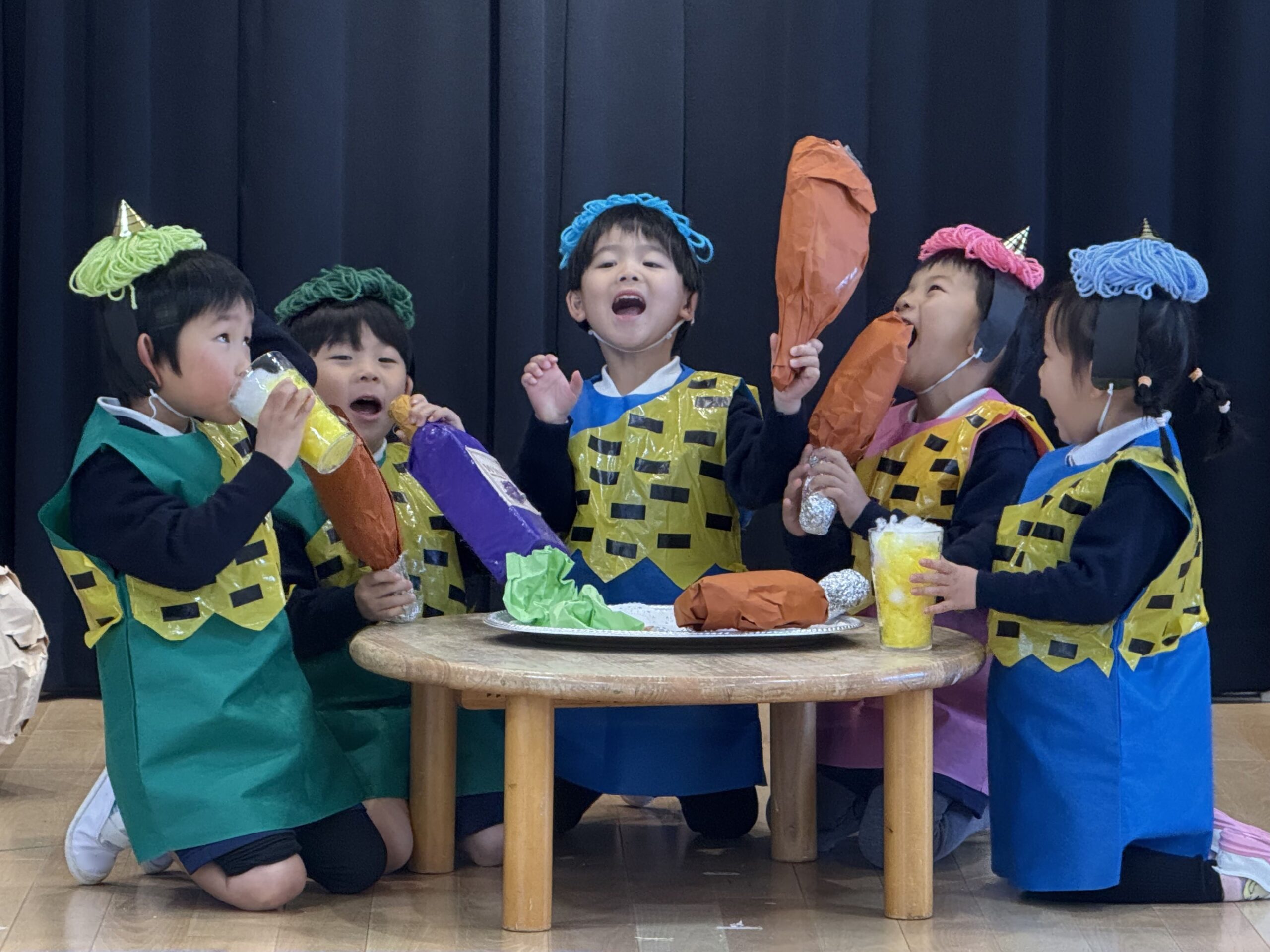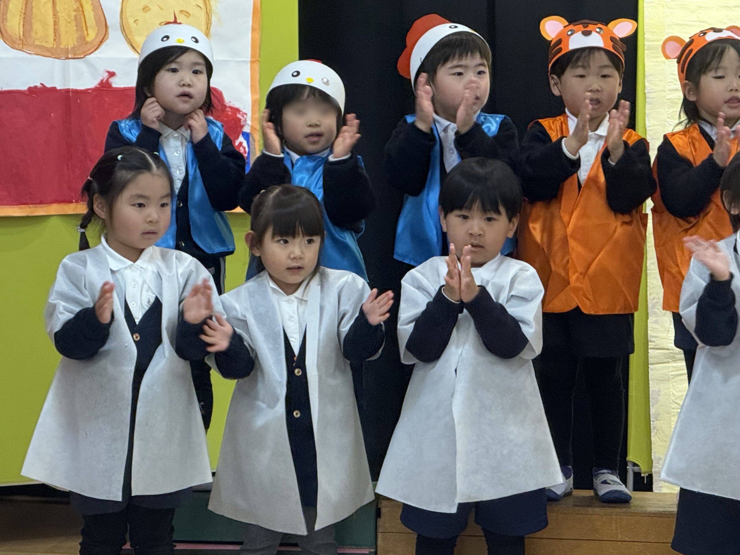たくさんのお家の方の前でドキドキしながらも、クラスの友達と一緒にお話の世界を楽しんでいる姿を見ていただけたかと
