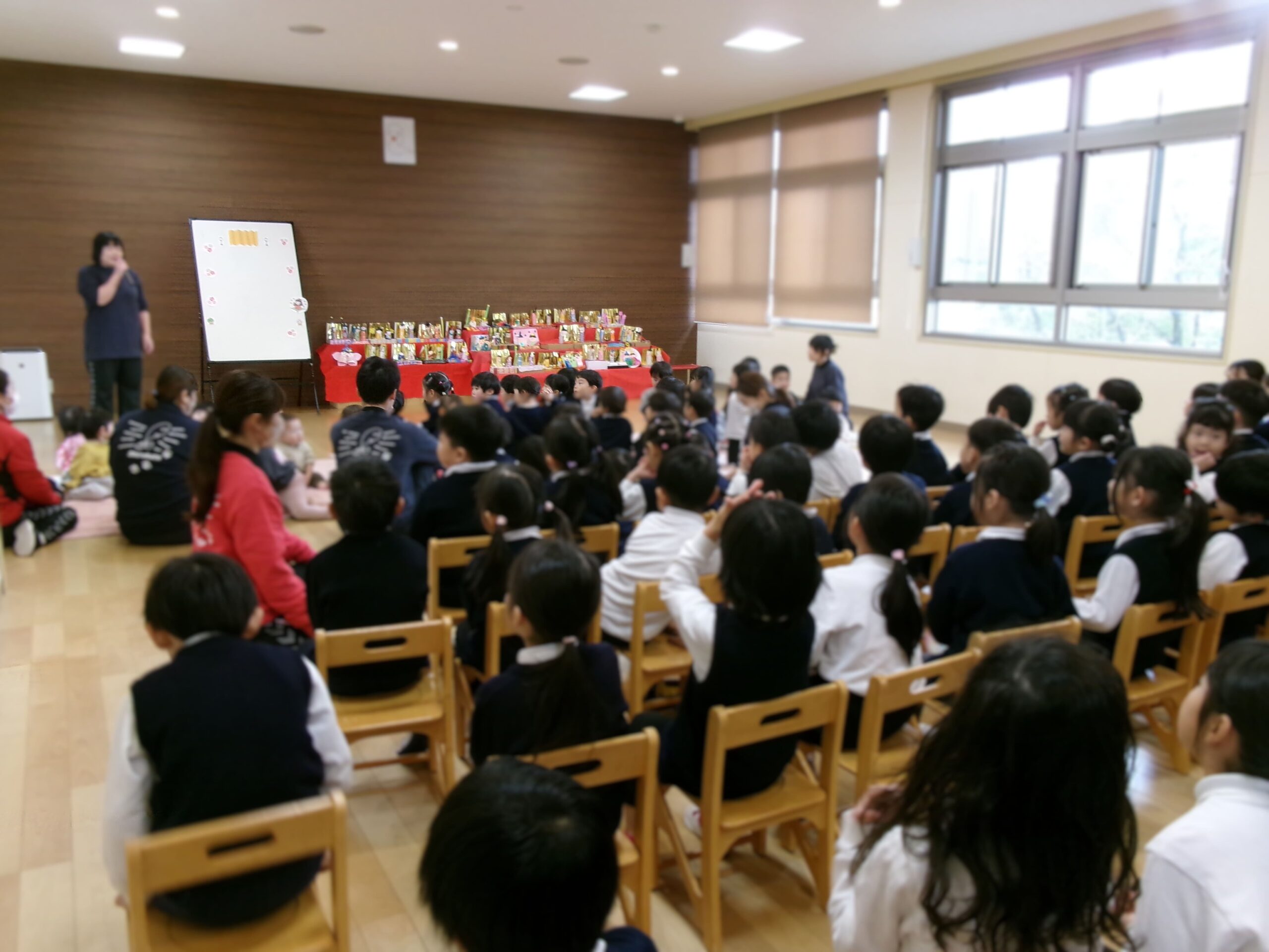 今日は「ひなまつり」です🎎みんなで「ひなまつり集会」をしてひなまつりの由来を知ったり、クイズをしたりして楽しみました。