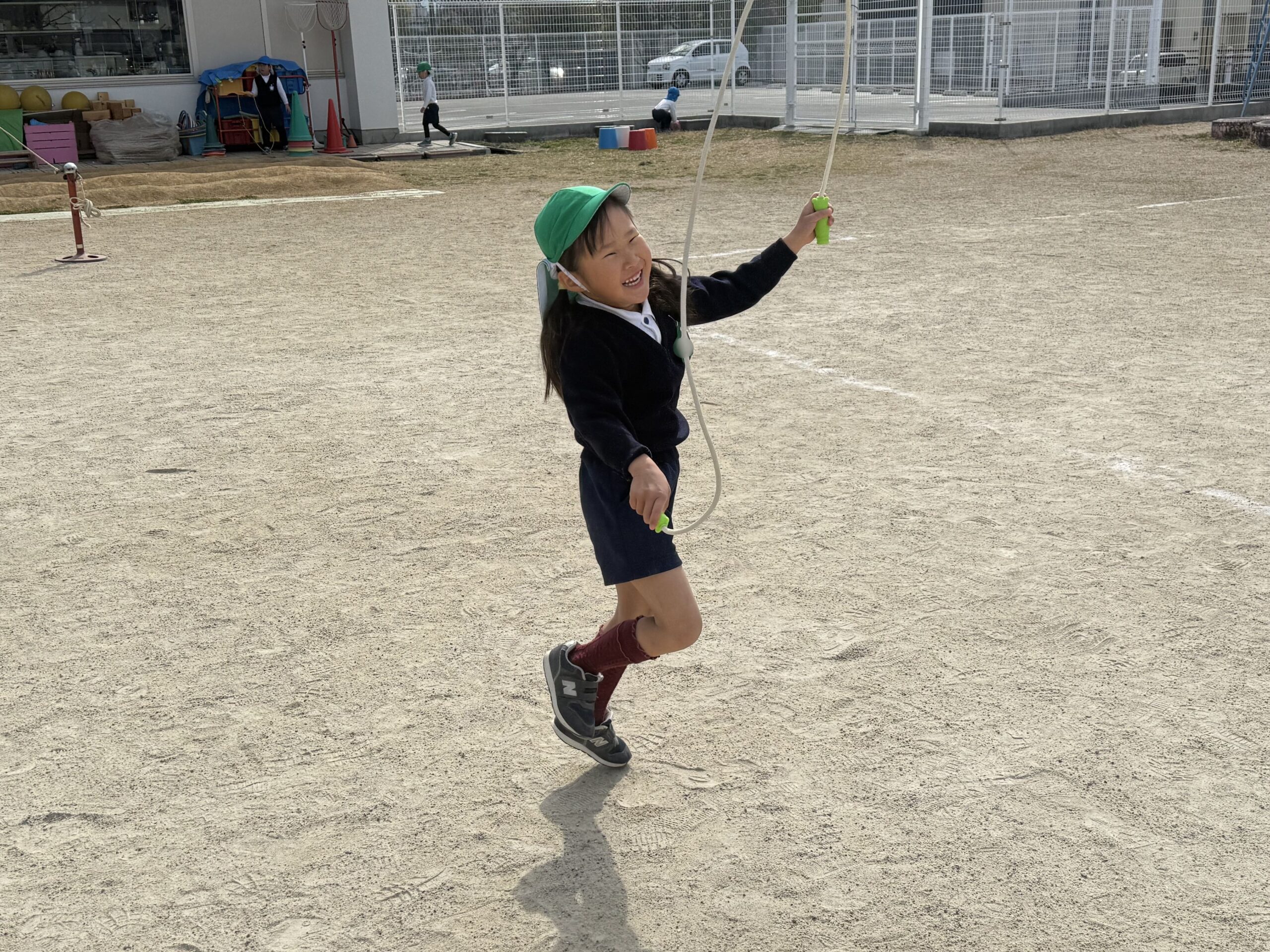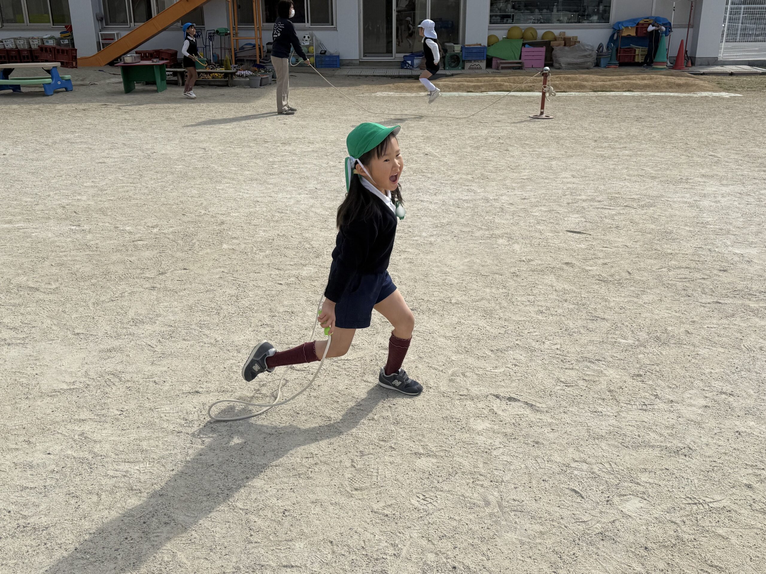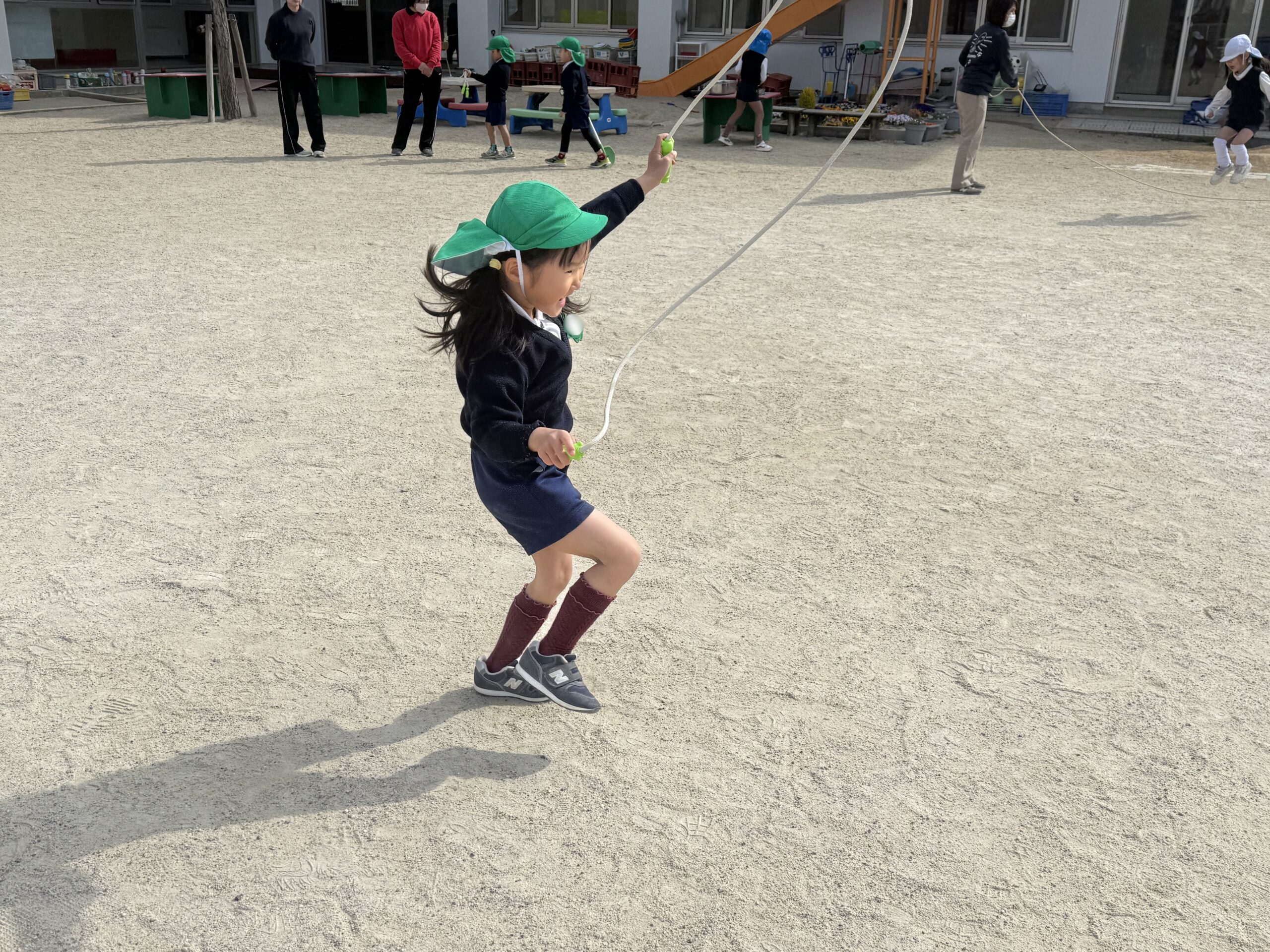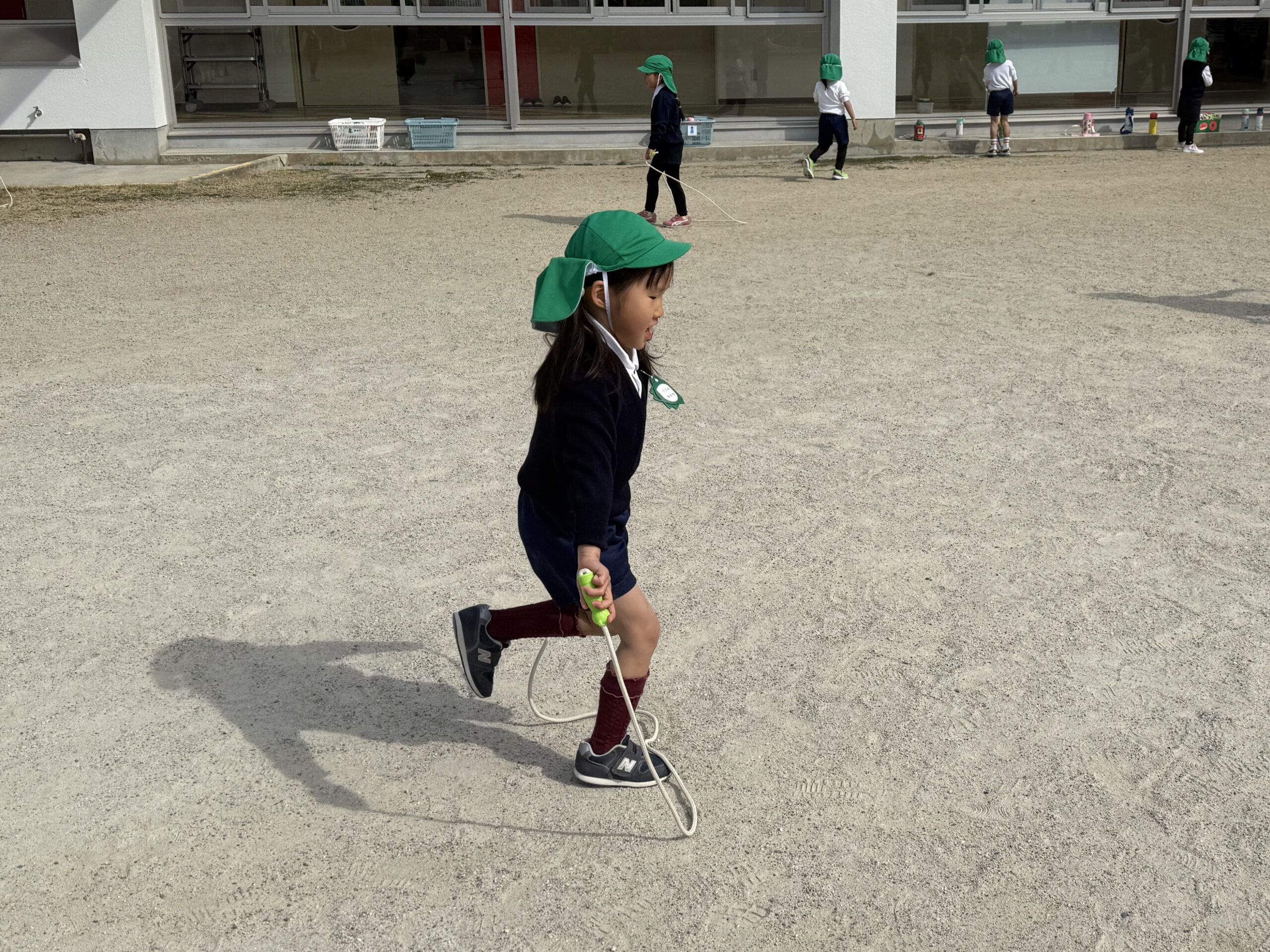 今日は走り縄跳びをしているのかなと思ったら、なんと『スキップ』で跳んでいます✨