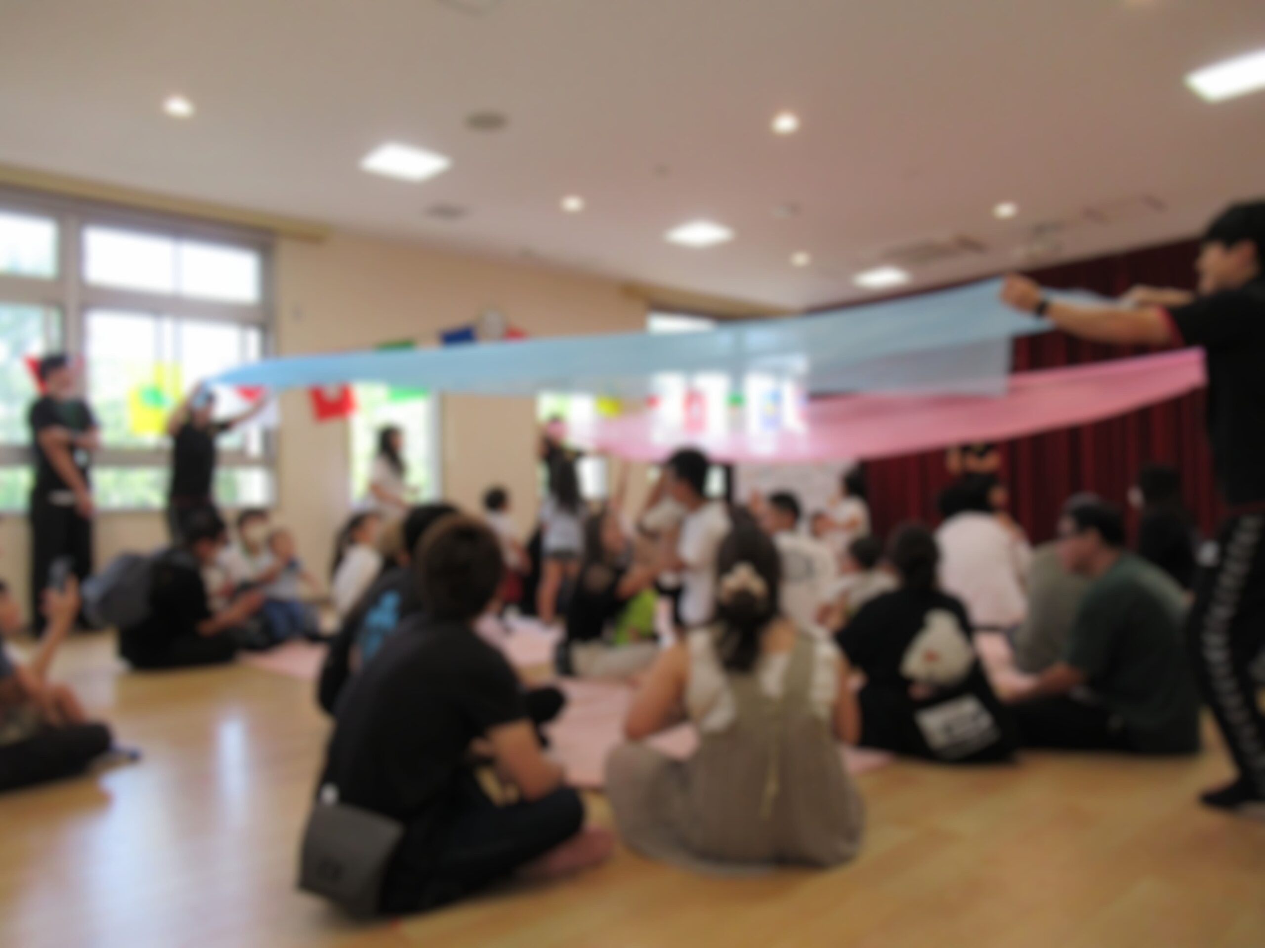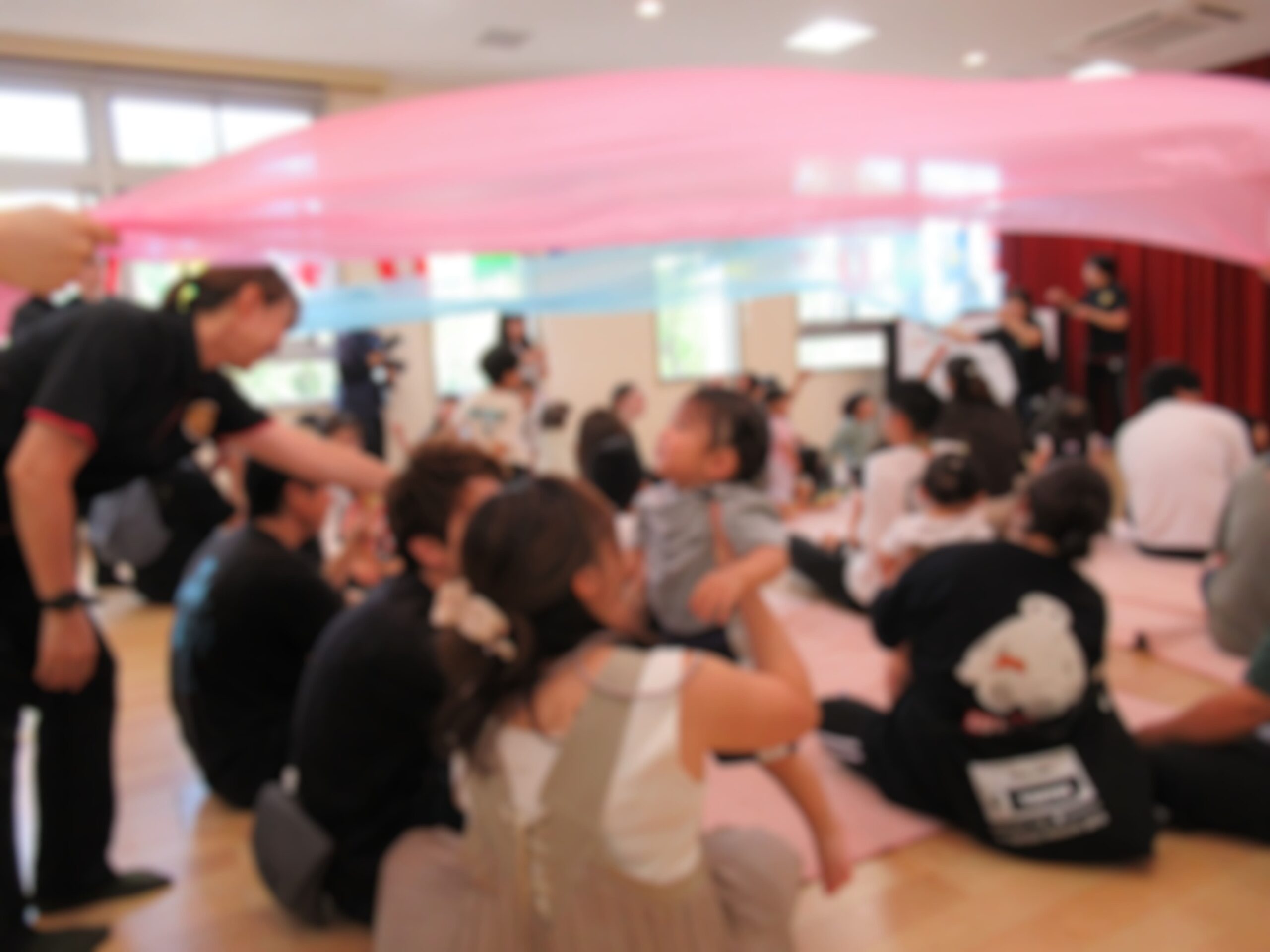 ふれあい遊びをしたり、大きなオーガンジーで♪おおかぜこーい♪をすると大盛り上がりでした。