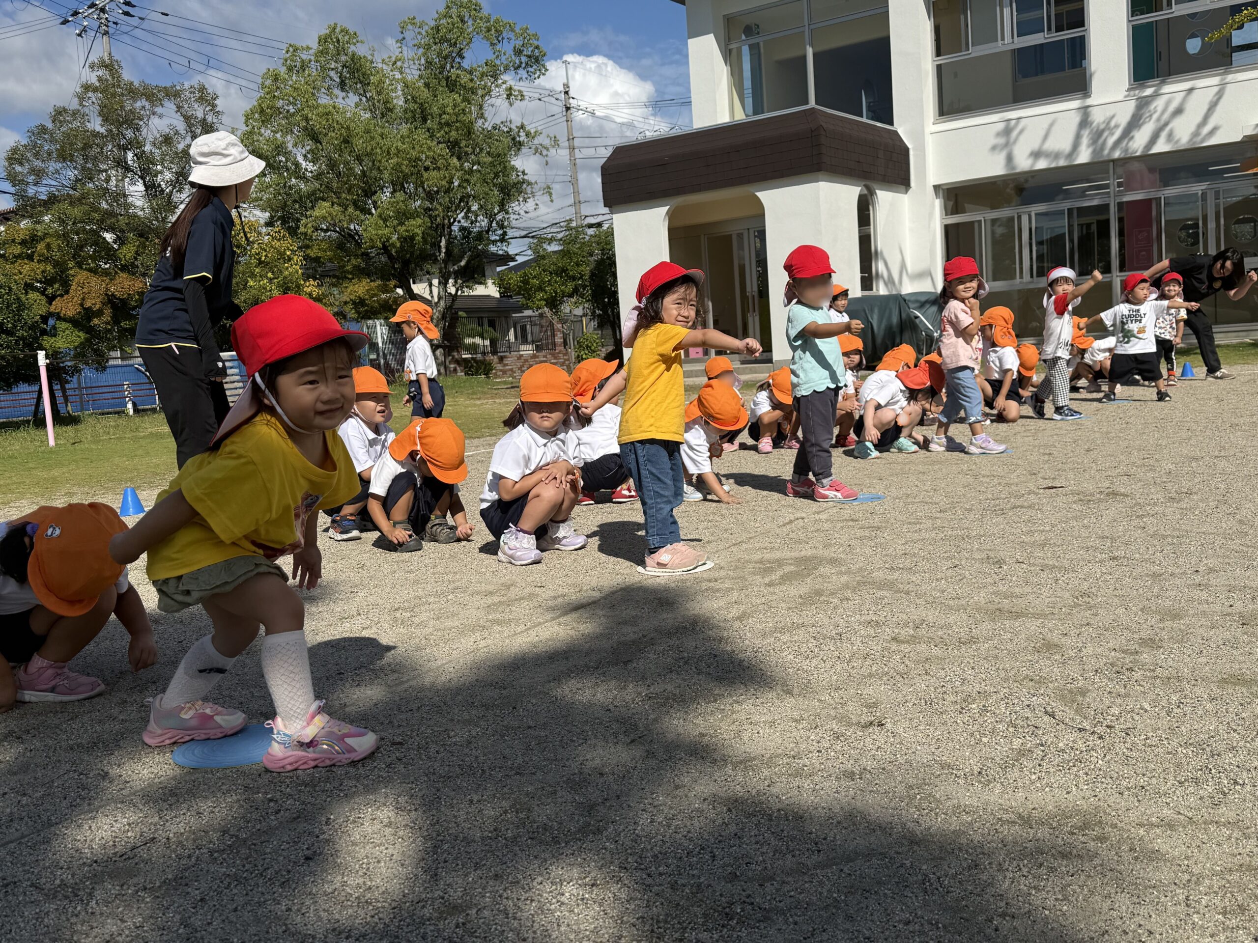 「今からかけっこ頑張るぞ!」まかろんさんの気合の入ったポーズが可愛いです!