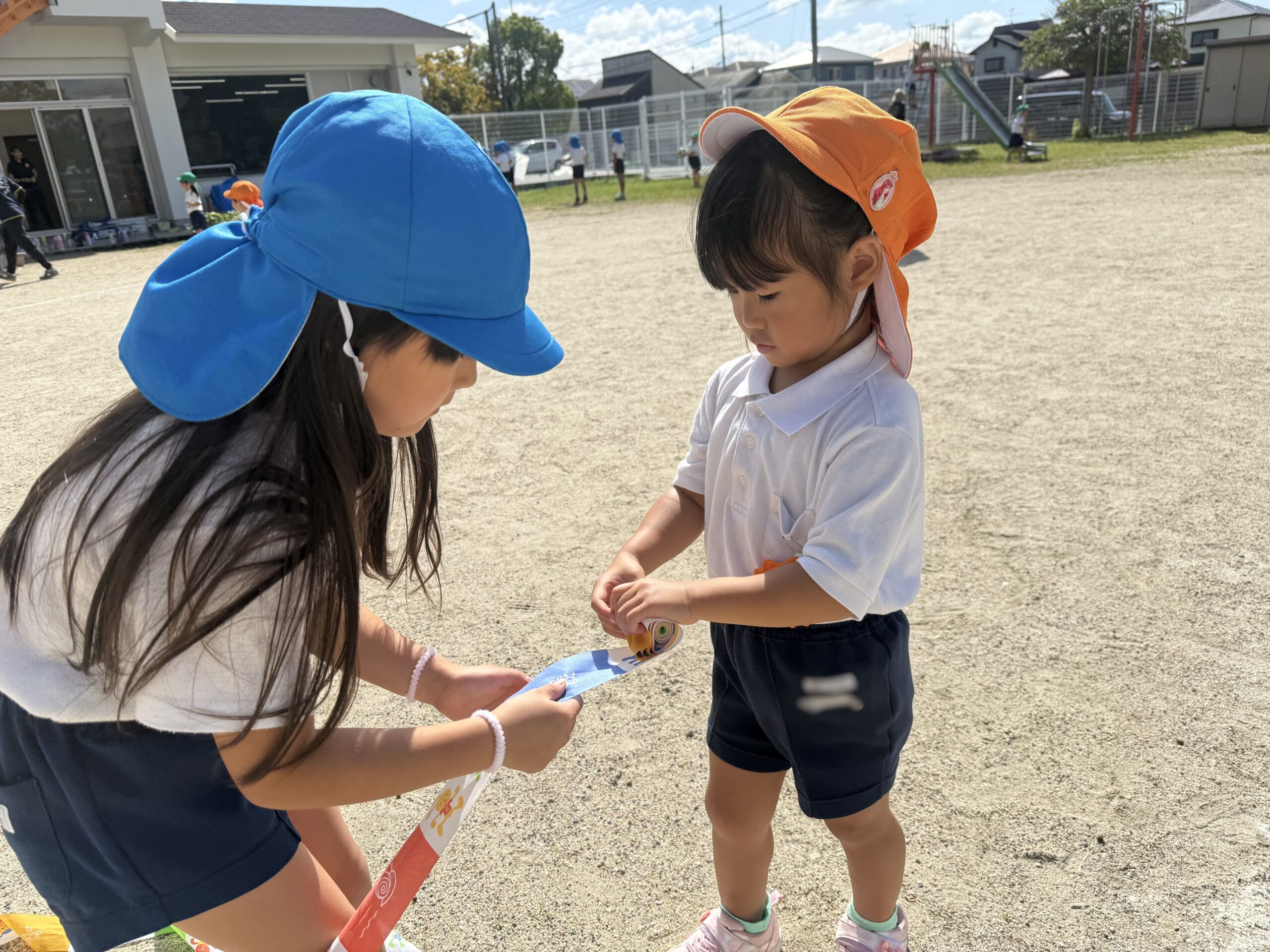 ゴールテープを使った後は、子ども達が巻いてくれます✨