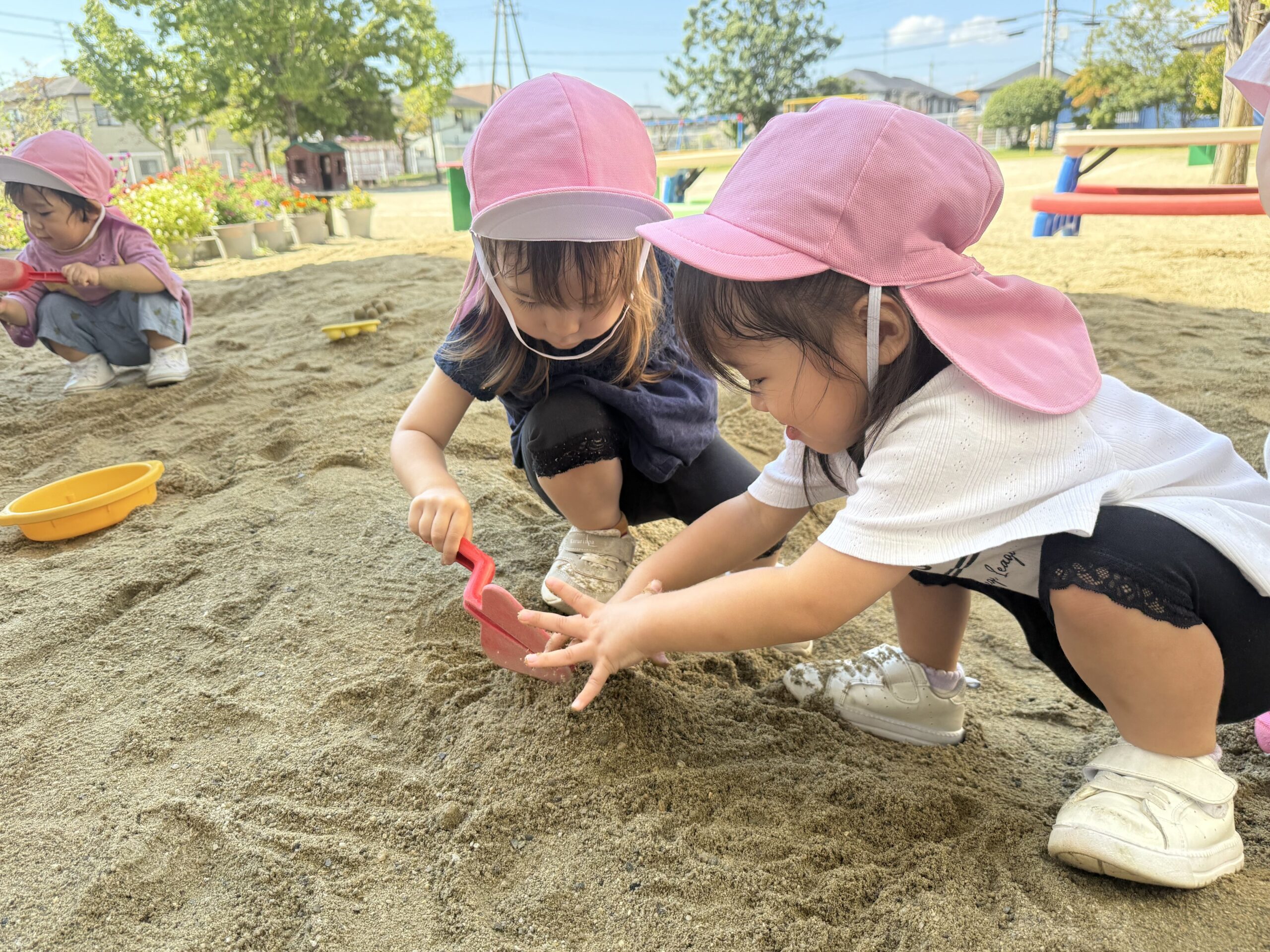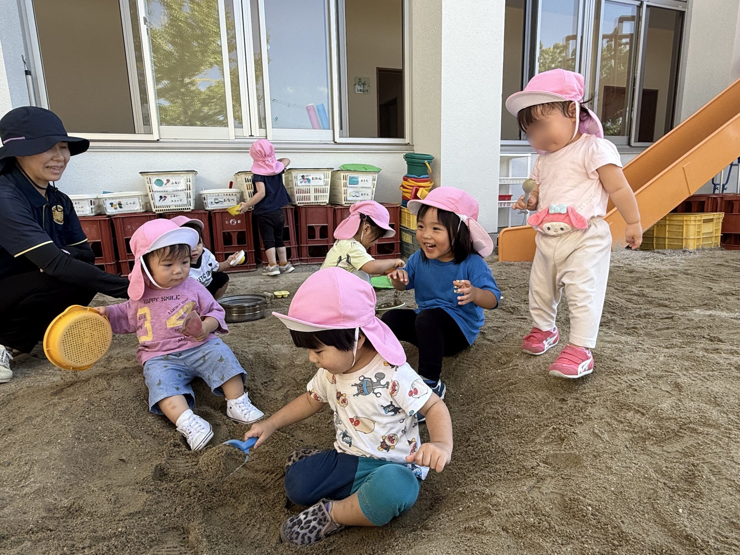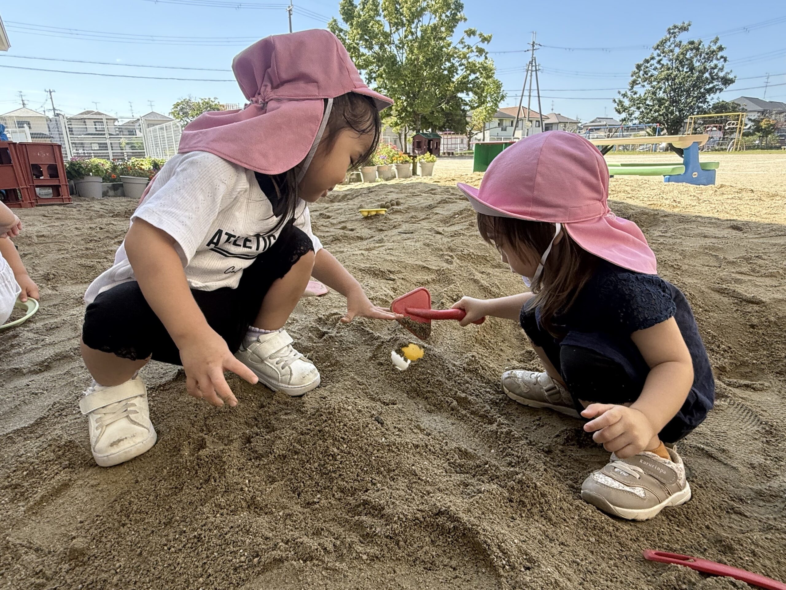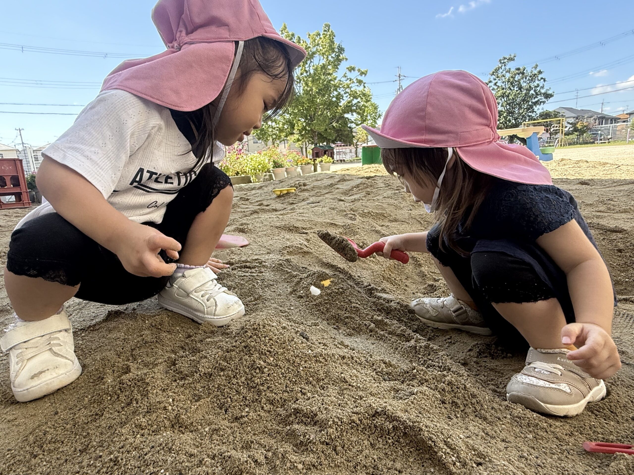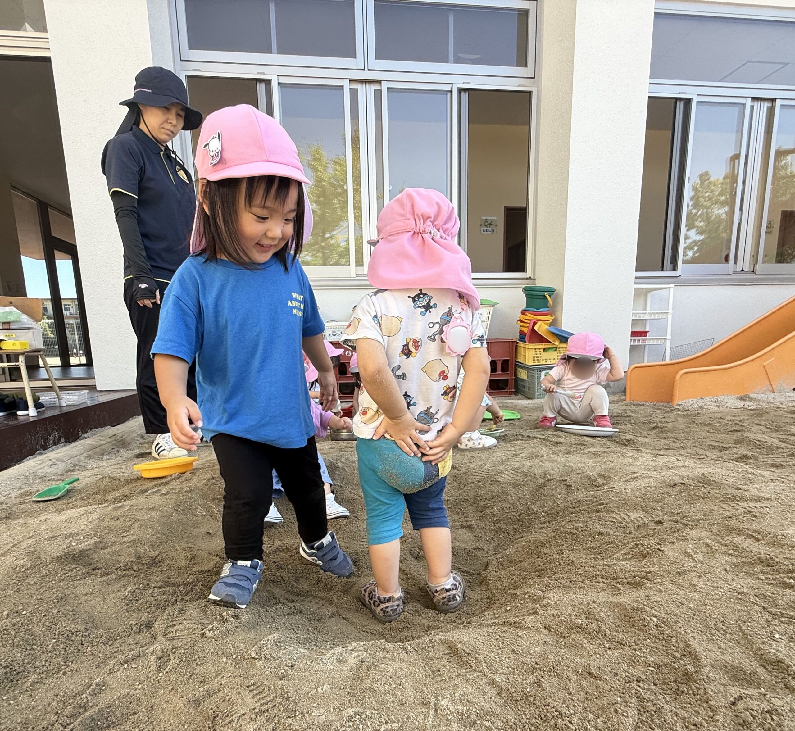 お友達のズボンに砂が・・・そっと払ってくれた優しいRくんです😊