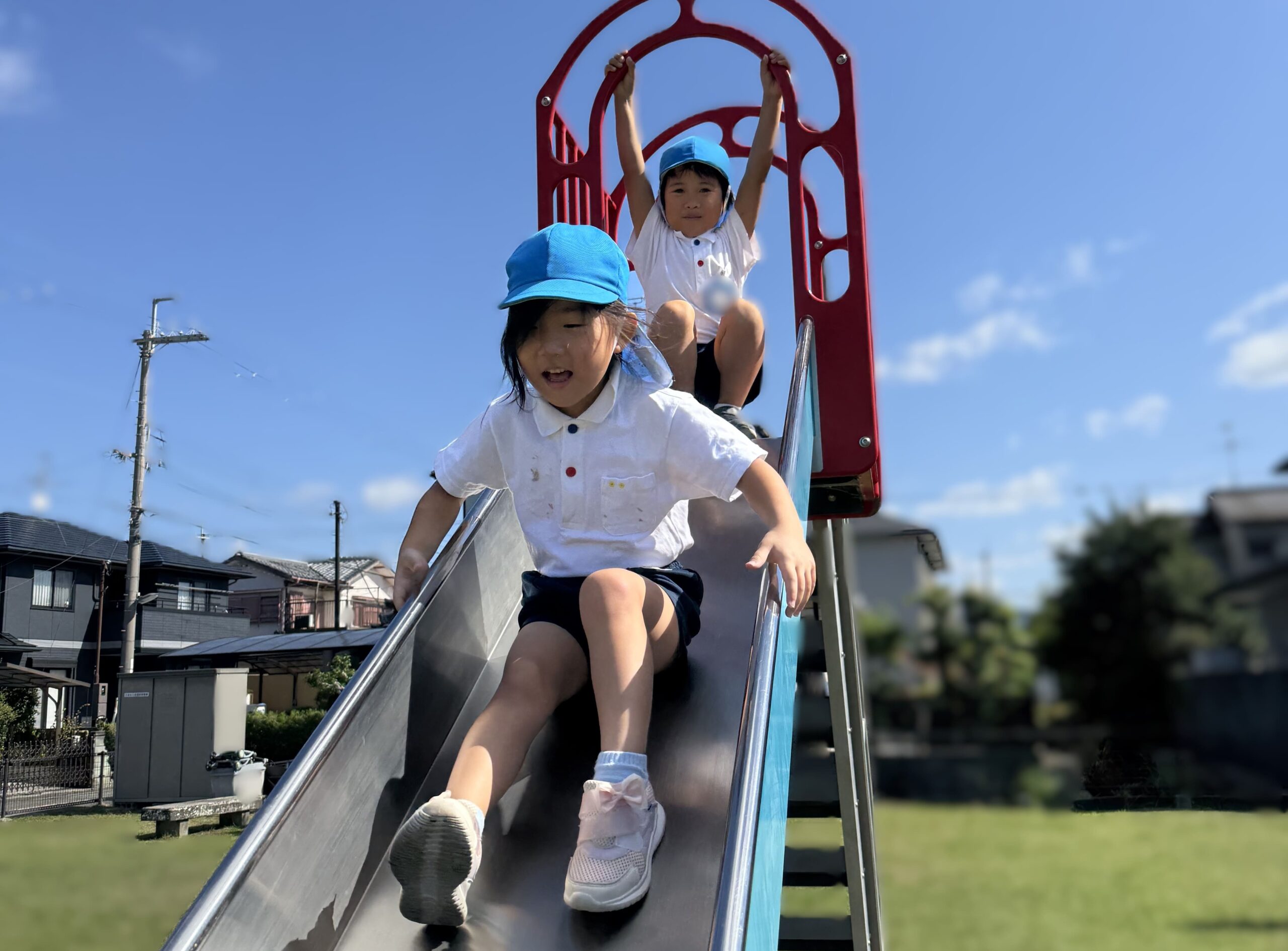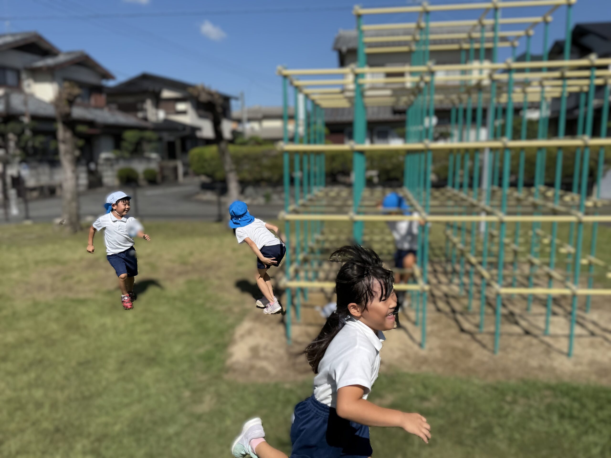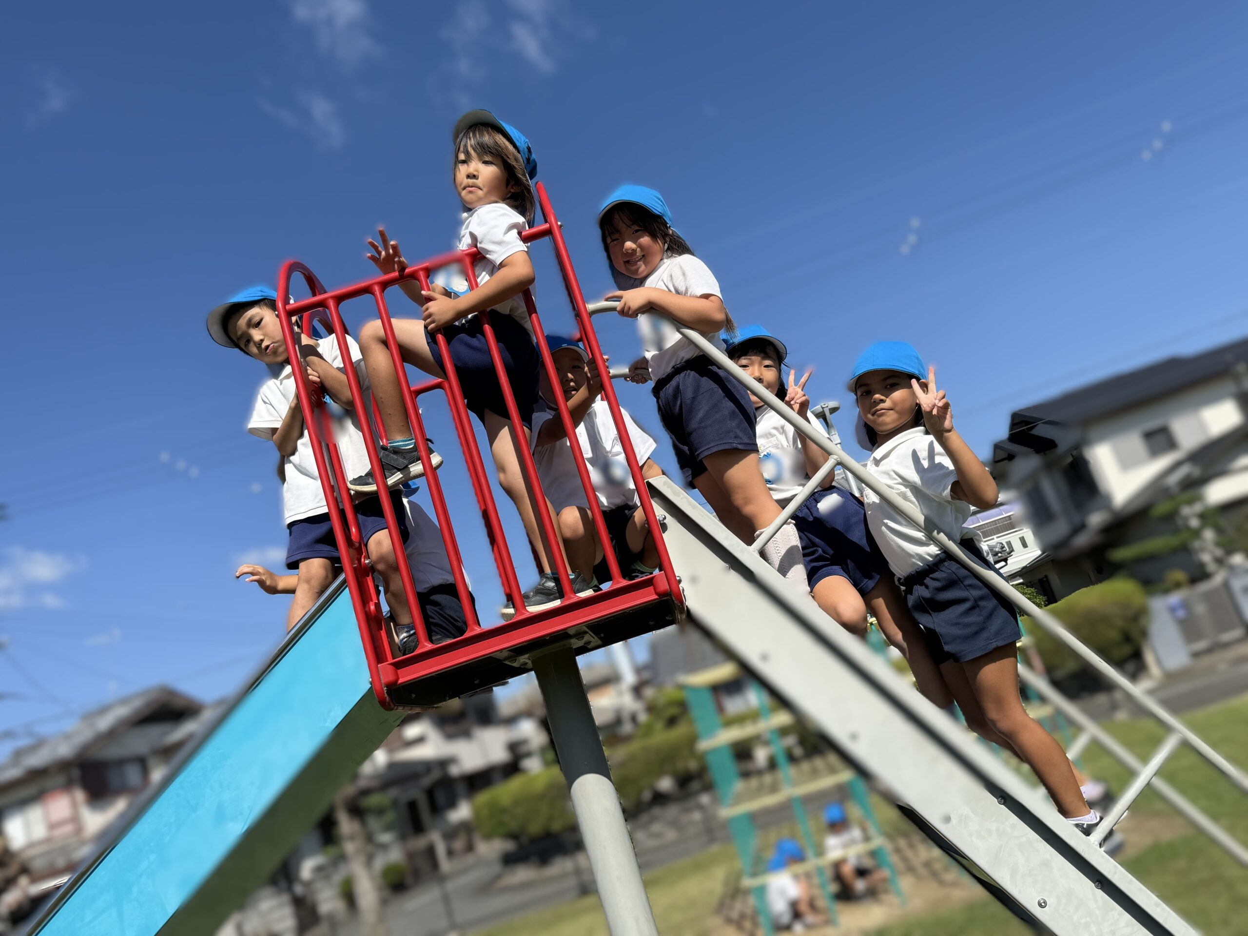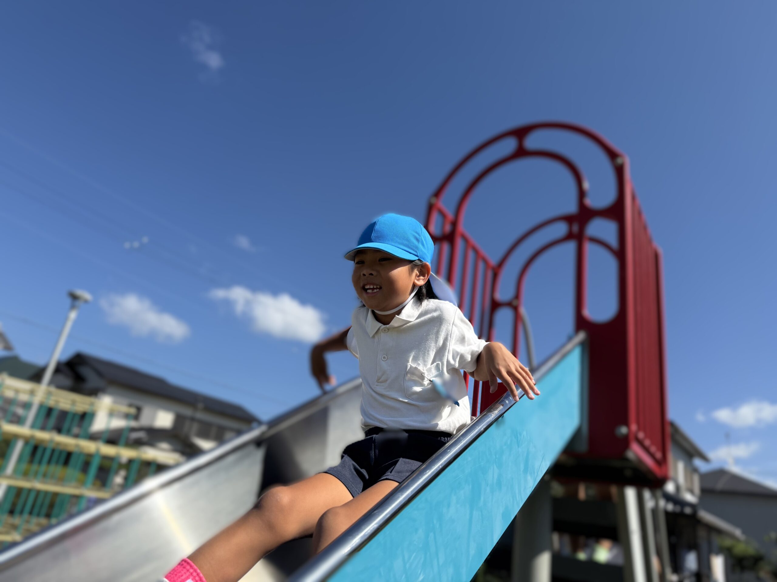 秋晴れの今日、あかしあ公園まで散歩にでかけました。追いかけっこをしたり、虫探しをしたりと思い思いに遊びはじめました。わっふる組で大人気のバッタを見つけて大喜び。連れて帰ろうかと相談しましたが、「遠い所に連れて帰ると家族に会えなくてかわいそう」というTちゃんの提案で、そっと逃がしてあげることに。たくさん遊んで笑顔いっぱいのお散歩でした♪